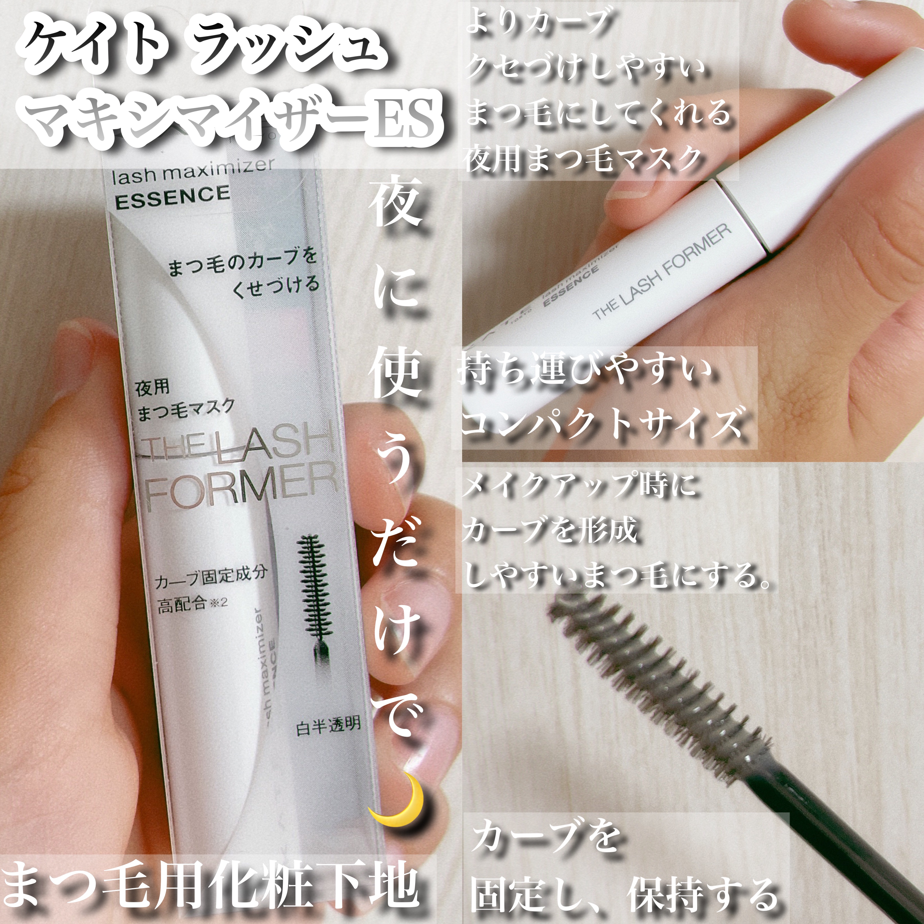 - リニューアル発売 長時間、カーブ持続するまつ毛用下地。 カーブの角度を固定し、上向きまつ毛を長時間キープするカーブ固定ワックス高配合(ケイトラッシュマキシマイザーシリーズとして)。 にじみにくく、落ちにくいきれいなまつ毛メイクが1日中持続。 リアル感のある2種類の黒い繊維入りで、ロング・ボリューム効果まで。 まつ毛の内側と外側からダブルでカーブを固定するカーブメモリー処方採用。 汗・水・皮脂に強いウォータープルーフタイプ。