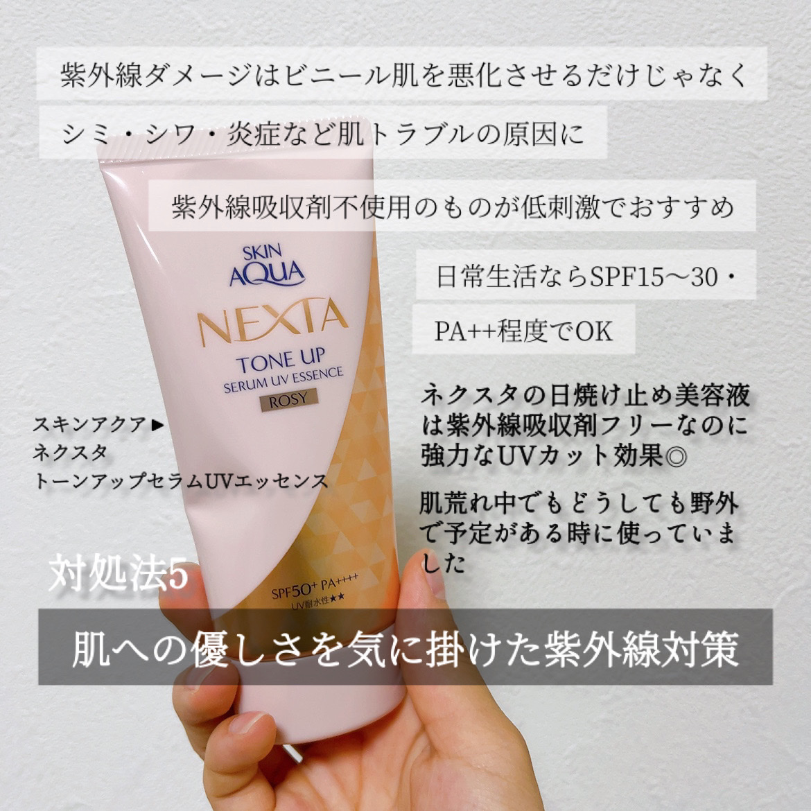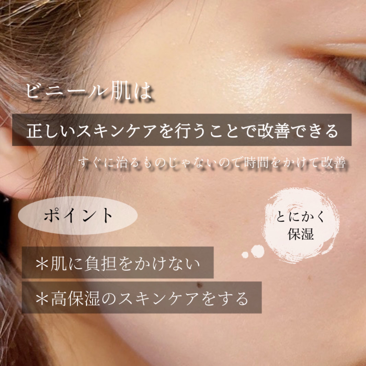 過剰にスキンケアしすぎて、肌に構いすぎて逆に肌トラブルが起こりやすい肌になってしまう… そんな状態がビニール肌っていうみたいです🧴 私は特にスキンケア中のマッサージなどで肌に刺激をよく与えちゃってるし、入浴後のつっぱり感が気になるくらい乾燥肌なので、肌のバリア機能は弱め🫧 それを自覚してからは色々な低刺激のクレンジングや化粧水、マスクパックの頻度を減らしたりさまざまな対処法を実践し、入浴後の乾燥感を徐々に減らしていきました🧴