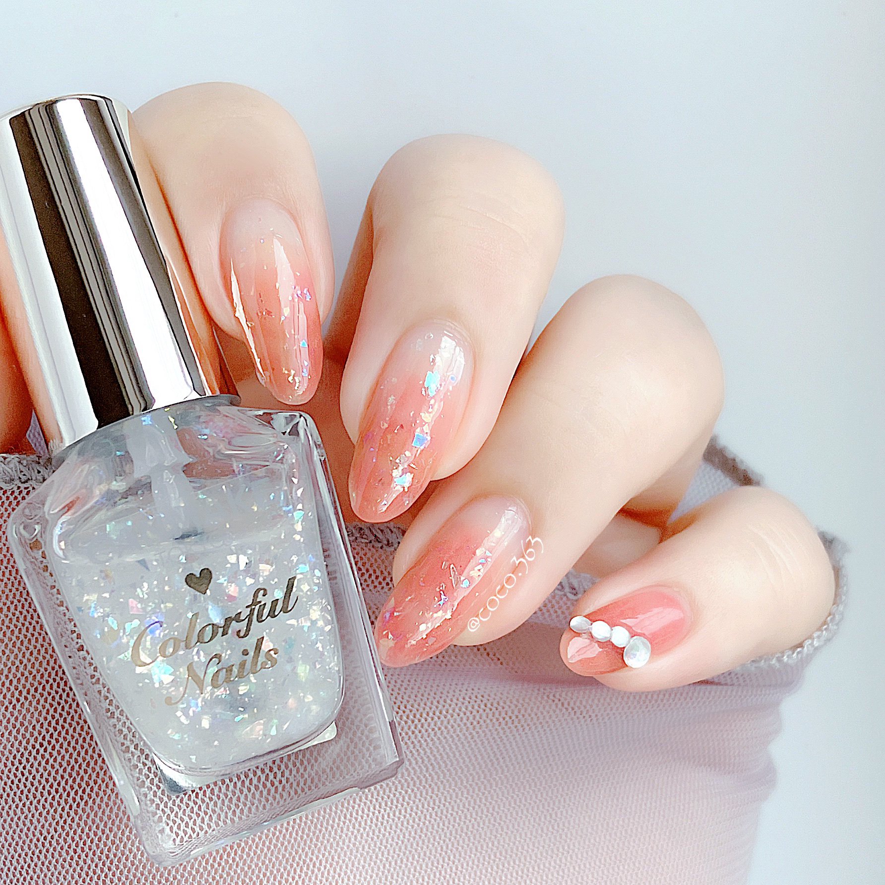 エアリーで透明感のあるN82 クラウドレススカイにちふれのシルバーラメを合わせると涼やかに𓂃◌𓈒𓐍 乱切りホロはあらかじめ小さめのものを選んでおきトップコートを2度塗りするとホロが取れにくくなりおすすめです👌🏻 ガラスフレンチ 透明感ネイル 青ネイル