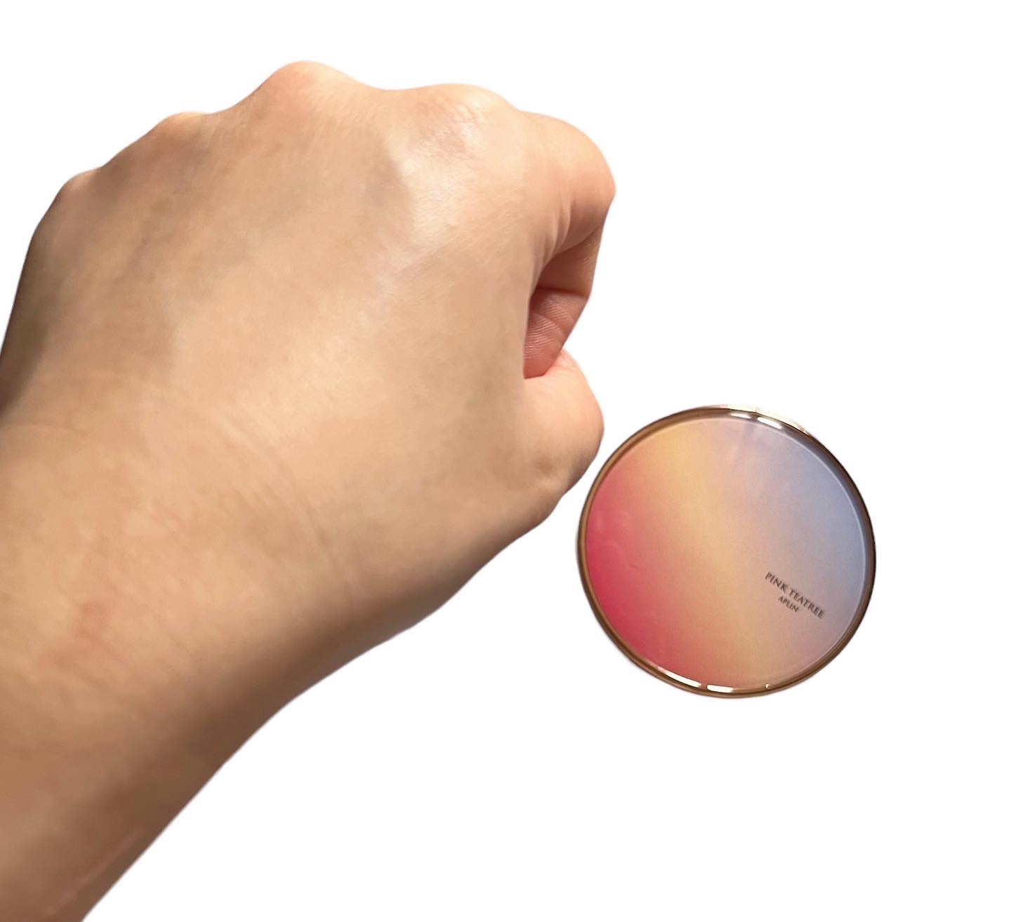 APLIN ピンクティーツリーカバークッション 21号ライトベージュ 2,490円(税込) 少量でよく伸びてハイカバー! 赤みやくすみをしっかりカバ一できるのに、厚塗り感のないなめらかな仕上がり♡ ハイカバーなのにナチュラルなツヤ感とサラッとしつつ、乾燥崩れしにくい仕上がりに感動します!!