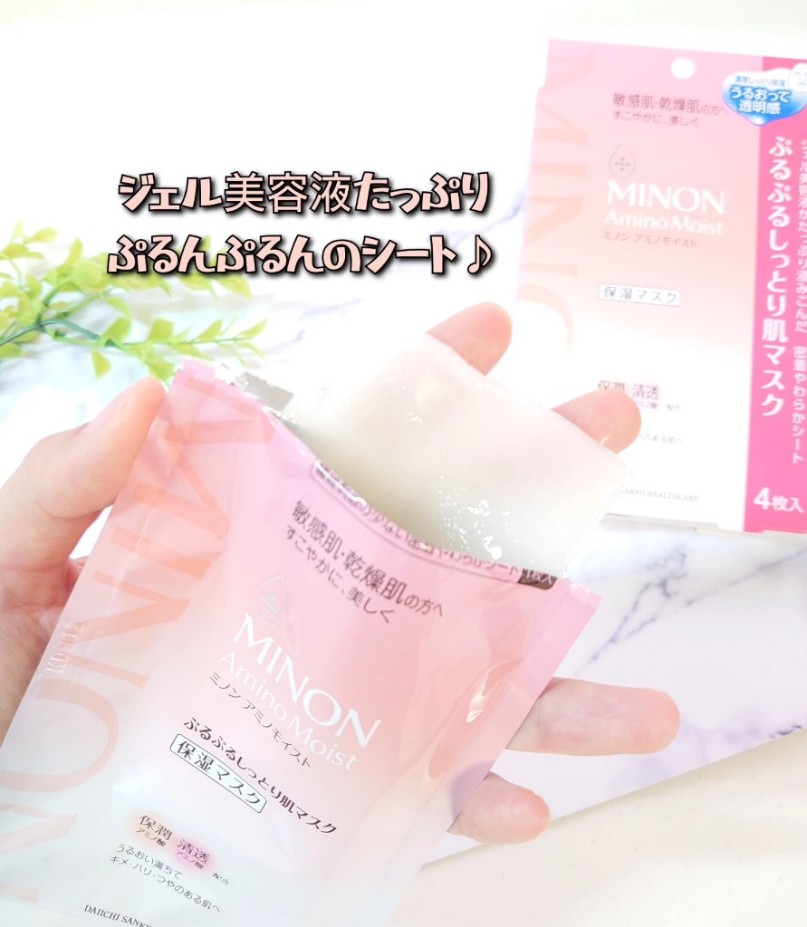 - 思わず触れたくなるほどみずみずしい肌へ。うるおって透明感。 乾燥による小ジワを目立たなくします(効能評価試験済み) 水分を保つ機能が低下しがちな角質層に、バリア機能をサポートする保湿成分を補給 ぷるぷるジェルがしみこんだ密着やわらかシートで、液ダレしません ◎ミノン アミノモイストのシートマスクは化粧水で肌を整えた後にお使いいただく「美容液マスク」です。 週に1-2回のスペシャルケアとしておすすめです♪