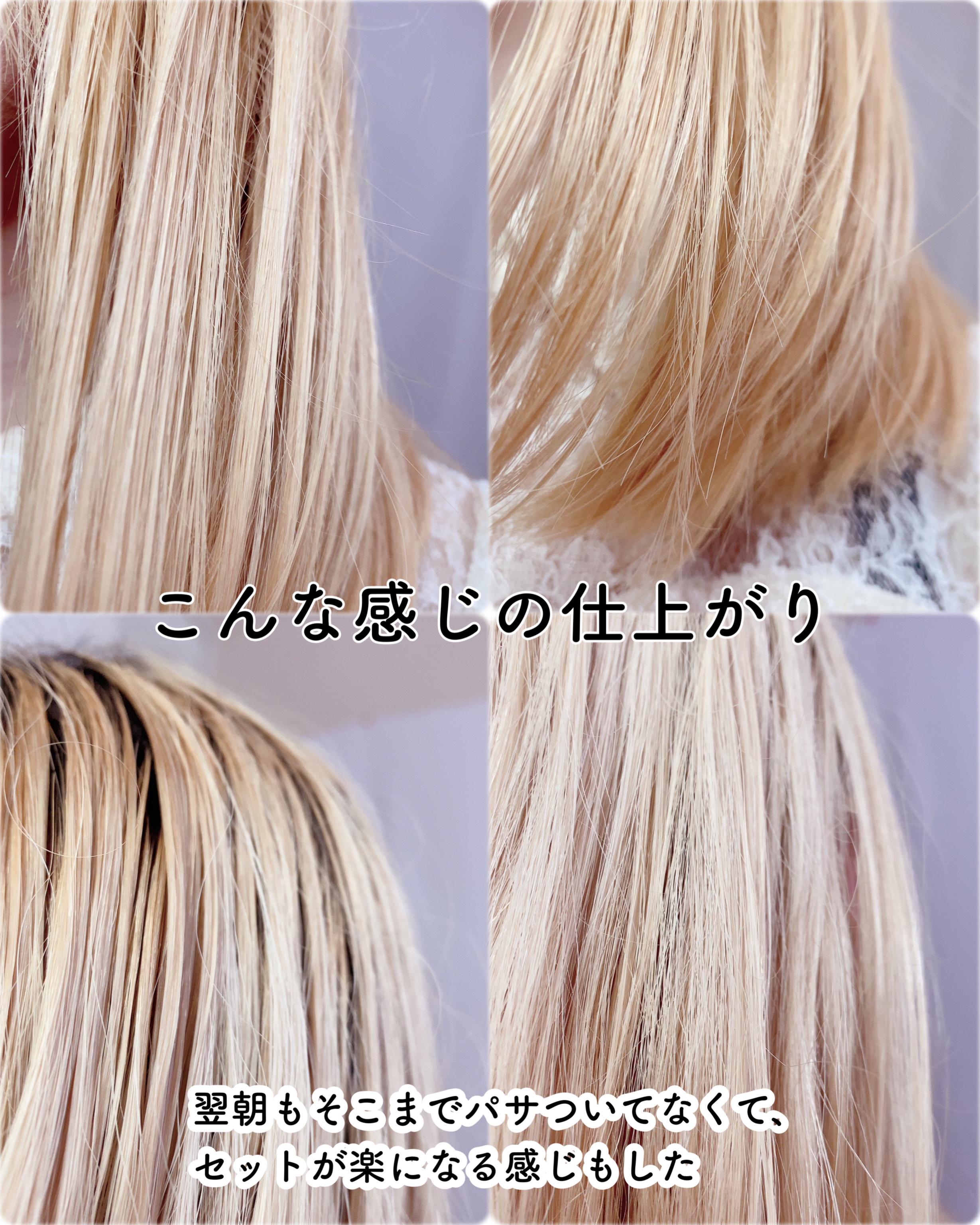 | 全体的な仕上がりは つるんと指通りが良くまとまりも良くて 個人的にはとっても好きな使用感です! | 詳細を見る | ||