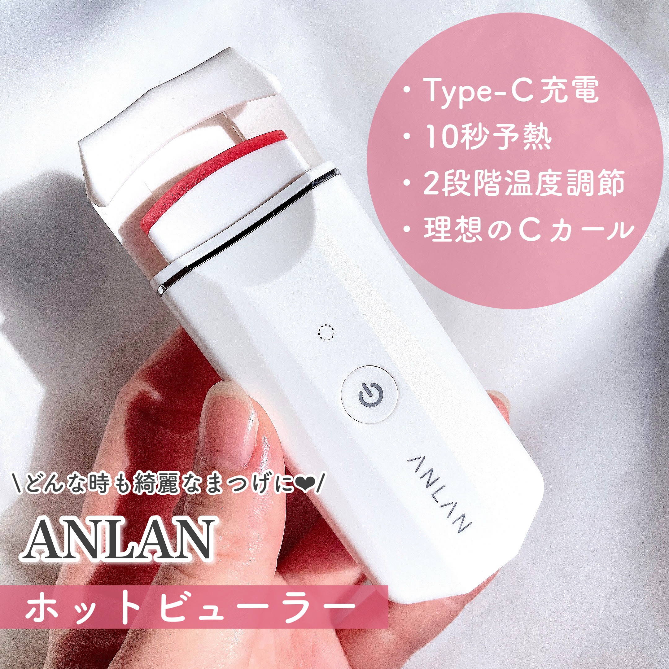 ANLANの説明書の日本語がちゃんと日本語だし、案件送ってくる際のDMの日本語もおかしくないし、ちゃんと充電口がType-Cだったり、CEマーク(欧州の安全認定マーク的な)を取ってたりと私はそこそこ信用しているので使ってる! カールが綺麗に上がるので、使った後に、かっちり固定する系のマスカラとピンセットを使うとワンホン風になる。 火傷もしたことないし、皮膚はたまにはさむけど怪我したことない。