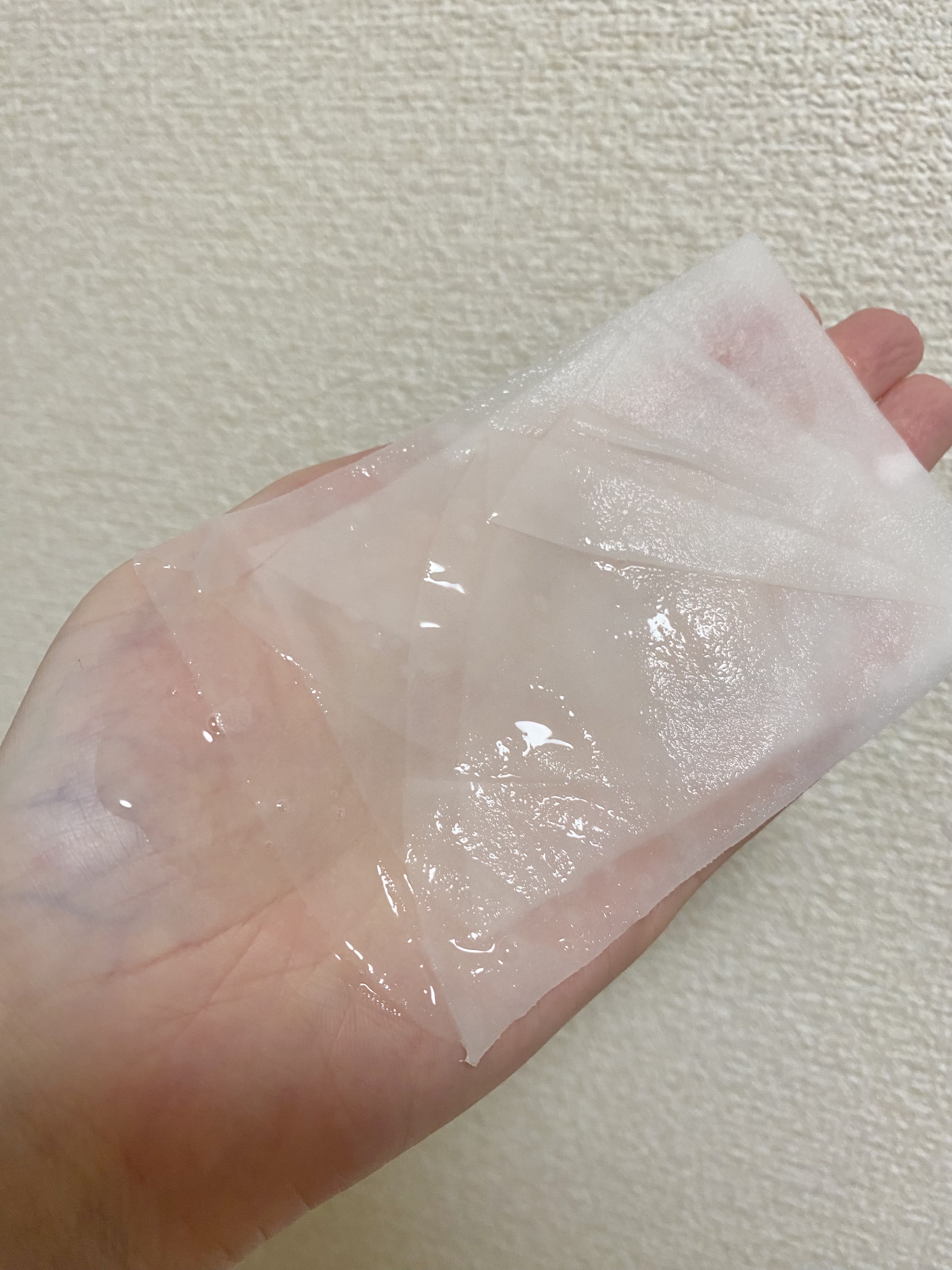 | シート自体の厚みはやや薄めでフィット力高し。 そして何よりとろとろの美容液がヒタヒタに…🥺 | 詳細を見る |