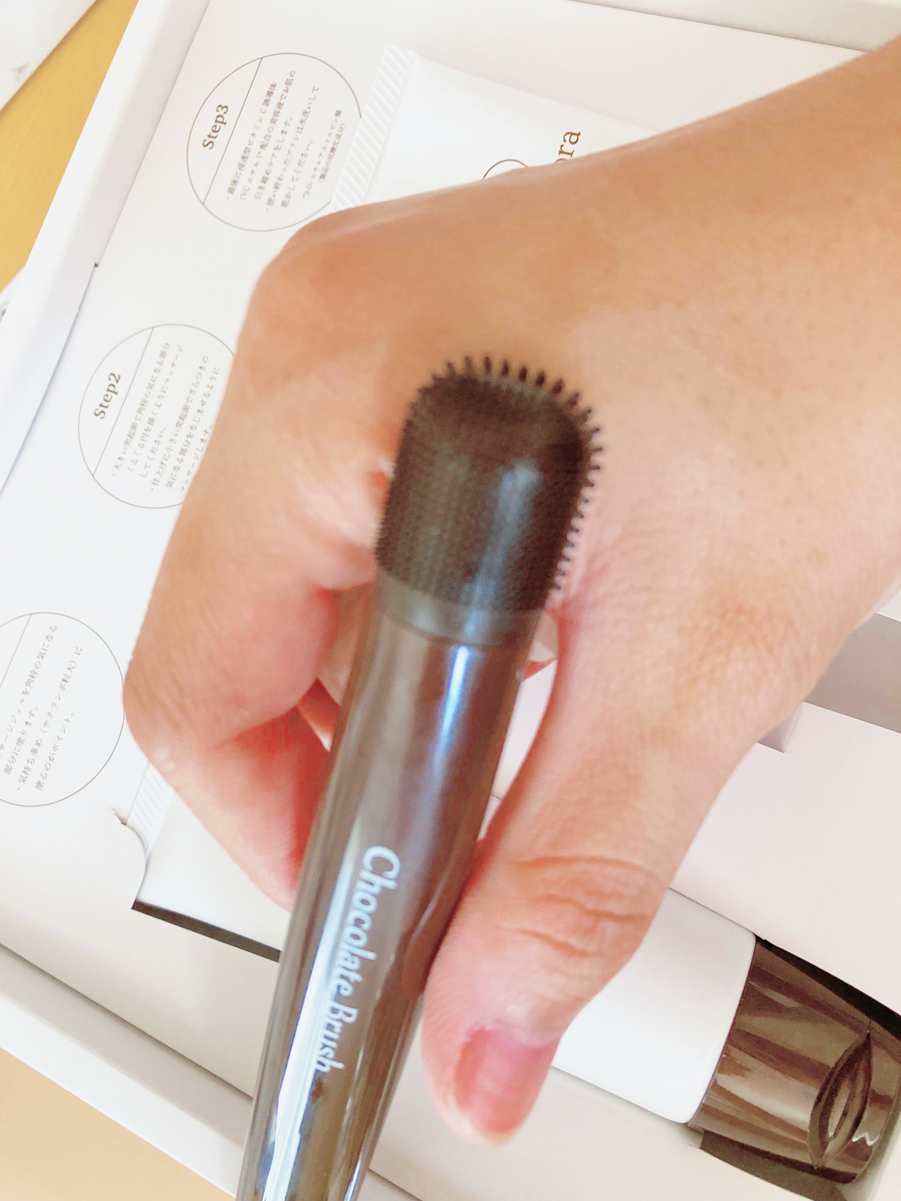 まず、マッサージジェルを角栓の気になる部分に塗ります。小鼻にぬりました。ポイントは気持ち多めに塗ること。 伸ばしているとあったかい!ホットジェルですね。のびがよくてマッサージするだけで気持ちいい感じでした。 続いて、マッサージブラシでマッサージしていきます。大きい突起面、仕上げは小さい突起面です。 小鼻にフィットする大きさで、くるくるしやすいですね。ほどよい硬さのシリコンブラシなのでお肌を傷つけることなく、ちょうどいい刺激でした。 洗い流すと毛穴がスッキリした気がします。 仕上げに美容液を化粧水後になじませました。お肌の引き締めケアができるので、刺激を与えた毛穴を引き締めて毛穴が小さくなることを期待して使っています。 小鼻がスッキリして気持ちいい使い心地の3ステップでした。