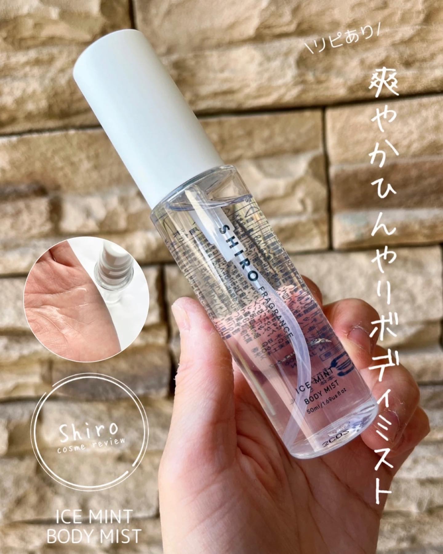 SHIRO アイスミントボディミスト ¥1,980メンソール成分が効いていて肌がスースーします。柑橘系のさわやかな香りと、つけた瞬間からヒンヤリする感じで涼しい気持ちにしてくれます。持ち運びにするのに便利です。#ボディミスト#ボディローション...