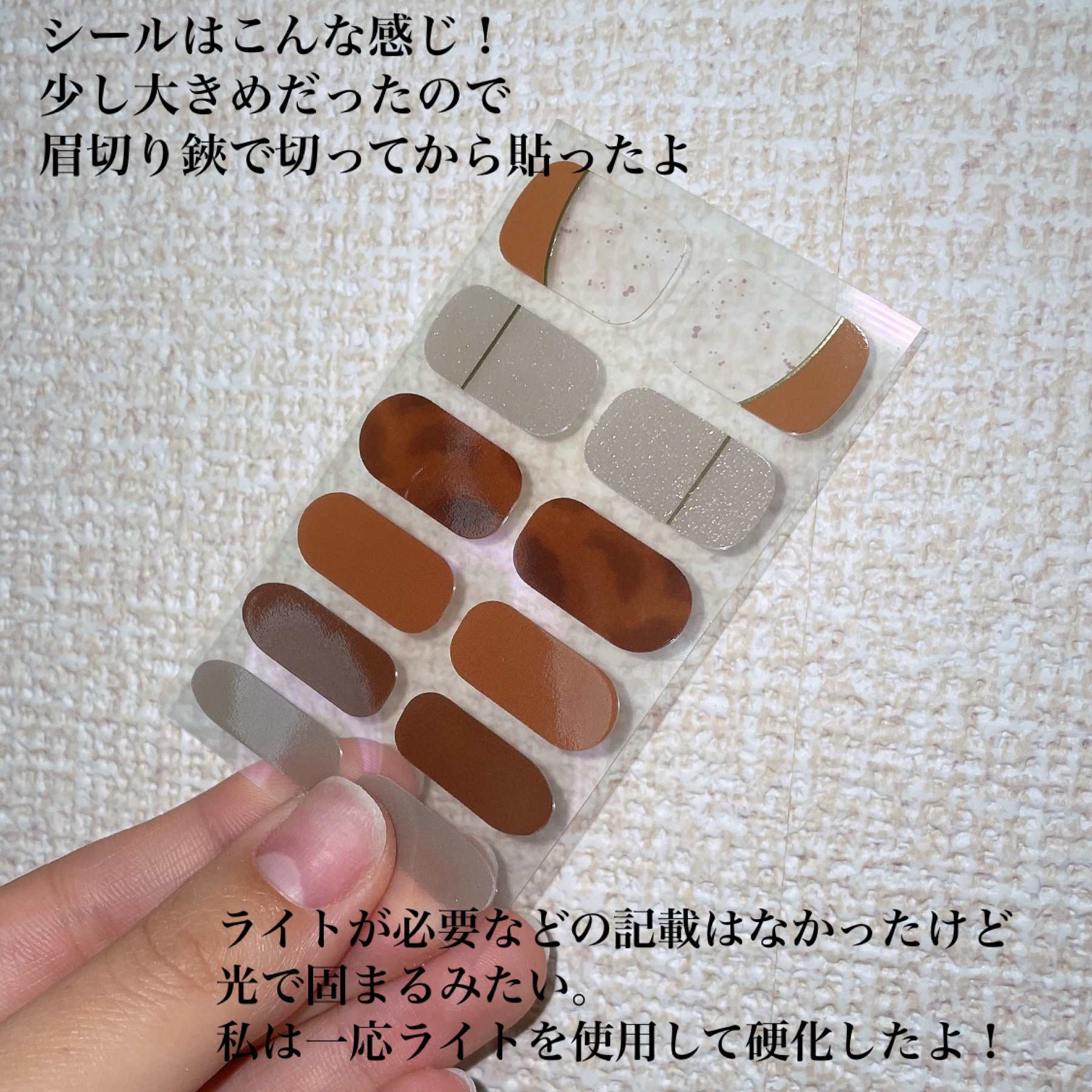 ずっと気になっていたDAISOのジェルネイルシールを使ってみた😊種類がたくさんあって、まず選ぶ楽しみがある🥹!!!可愛いデザインが沢山💓硬化タイプなので貼ってから、自前のライトで硬化しました✨(60秒)GelMeシリーズとかに比べると、やっぱ...