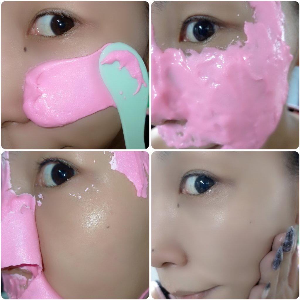 ピンク色のパウダーはワインエキス配合でキメを整えツヤを与えてくれます✨ 塗るとひんやり気持ちがよく、毛穴がキュッとフェイスパックより保湿力がありそうです。 剥がす時はポロポロすることもあるので注意が必要ですが、比較的剥がしやすいパックです。 最後は化粧水やクリームなどで仕上げて完成👍 とっても気持ちいい体験でした✨