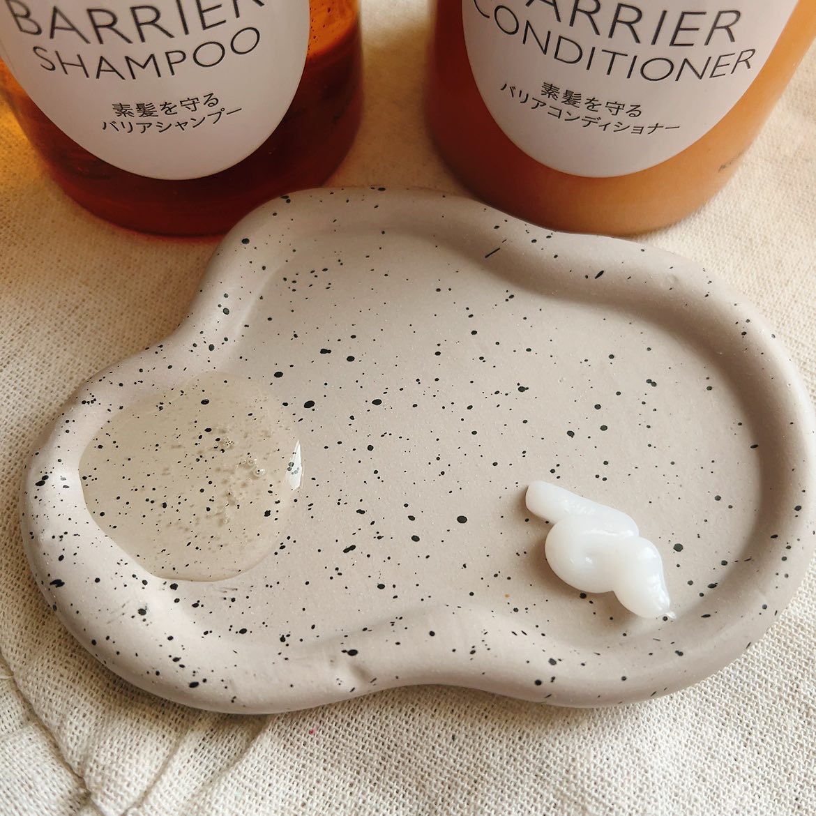 - うる髪続くバリアシャンプー・コンディショナー 雨の日、乾燥した日も しなやかにまとまる 【バリアシャンプー・コンディショナー共通】 ●浸透美髪バリア処方 ・髪内部のダメージ補修 ・ 髪本来のバリア機能*の働きを補う *髪の毛流れに変化を及ぼす湿度・摩擦等からバリアする機能 ●天然由来の美髪オイル 18-MEA OIL*配合(毛髪保護)*ラノリン脂肪酸 ●サルフェートフリー処方 ●合成着色料フリー ●加水分解コラーゲン・スクワラン・シアバター配合(保湿) ✿フローラルリュクスの香り 【バリアシャンプー】 ●3種のアミノ酸系洗浄成分使用 ●とろふわスフレ泡で素髪が持つ美髪成分*を守りながらやさしく洗う *タンパク質、脂質 ●ノンシリコーン処方 【バリアコンディショナー】 ●傷んだ髪を集中補修&コート ●湿度や摩擦等の外部刺激から髪を守る ●セラミドES*配合(補修)*ビスメトキシプロプルアミドイソドコサン