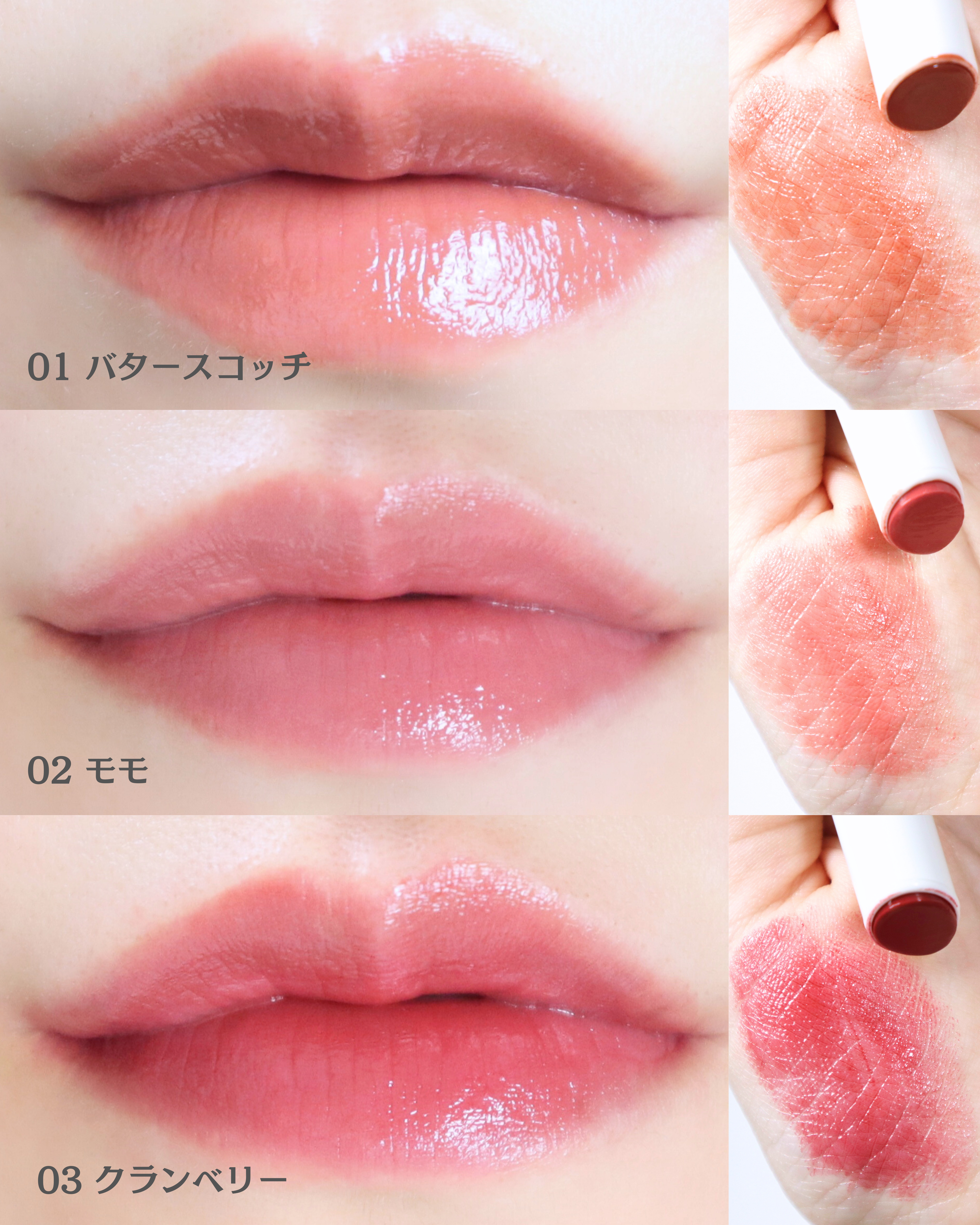 - <01 バタースコッチ> 水添ポリイソブテン、トリエチルヘキサノイン、ビスジグリセリルポリアシルアジペート-2、ヒドロキシステアリン酸エチルヘキシル、ワセリン、リンゴ酸ジイソステアリル、マイクロクリスタリンワックス、合成ワックス、シリカ、セスキイソステアリン酸ソルビタン、メントキシプロパンジオール、キャンデリラロウ、バニリルブチル、トコフェロール、クエン酸、クエン酸Na、ヒアルロン酸Na、アルガニアスピノサ核油、ハチミツ、シア脂、水、BG、加水分解コラーゲン、酸化鉄、酸化チタン、黄4、黄5、赤202、橙201、テトライソステアリン酸ポリグリセリル-2、青1、水酸化Al、赤223 <02 モモ> 水添ポリイソブテン、トリエチルヘキサノイン、ビスジグリセリルポリアシルアジペート-2、ヒドロキシステアリン酸エチルヘキシル、ワセリン、リンゴ酸ジイソステアリル、マイクロクリスタリンワックス、合成ワックス、シリカ、セスキイソステアリン酸ソルビタン、メントキシプロパンジオール、キャンデリラロウ、バニリルブチル、トコフェロール、クエン酸、クエン酸Na、ヒアルロン酸Na、アルガニアスピノサ核油、ハチミツ、シア脂、水、BG、加水分解コラーゲン、酸化チタン、黄4、黄5、赤202、酸化鉄、橙201、水酸化Al、テトライソステアリン酸ポリグリセリル-2 <03 ワインベリー> 水添ポリイソブテン、トリエチルヘキサノイン、ビスジグリセリルポリアシルアジペート-2、ヒドロキシステアリン酸エチルヘキシル、ワセリン、リンゴ酸ジイソステアリル、マイクロクリスタリンワックス、合成ワックス、シリカ、セスキイソステアリン酸ソルビタン、メントキシプロパンジオール、キャンデリラロウ、バニリルブチル、トコフェロール、クエン酸、クエン酸Na、ヒアルロン酸Na、アルガニアスピノサ核油、ハチミツ、シア脂、水、BG、加水分解コラーゲン、黄4、赤202、酸化チタン、酸化鉄、橙201、黄5、テトライソステアリン酸ポリグリセリル-2、赤223、水酸化Al、青1 <05 フィグピューレ> 水添ポリイソブテン、トリエチルヘキサノイン、ビスジグリセリルポリアシルアジペート-2、ヒドロキシステアリン酸エチルヘキシル、ワセリン、リンゴ酸ジイソステアリル、マイクロクリスタリンワックス、合成ワックス、シリカ、セスキイソステアリン酸ソルビタン、メントキシプロパンジオール、キャンデリラロウ、バニリルブチル、トコフェロール、クエン酸、クエン酸Na、ヒアルロン酸Na、アルガニアスピノサ核油、ハチミツ、シア脂、水、BG、加水分解コラーゲン、酸化チタン、黄4、赤202、黄5、酸化鉄、橙201、青1、水酸化Al、テトライソステアリン酸ポリグリセリル-2、赤223 <06 ラズベリーケーキ> 水添ポリイソブテン、トリエチルヘキサノイン、ビスジグリセリルポリアシルアジペート-2、ヒドロキシステアリン酸エチルヘキシル、リンゴ酸ジイソステアリル、ワセリン、マイクロクリスタリンワックス、合成ワックス、シリカ、セスキイソステアリン酸ソルビタン、メントキシプロパンジオール、キャンデリラロウ、バニリルブチル、トコフェロール、クエン酸、クエン酸Na、ヒアルロン酸Na、アルガニアスピノサ核油、ハチミツ、シア脂、水、BG、加水分解コラーゲン、酸化チタン、酸化鉄、赤202、橙201、水酸化Al、テトライソステアリン酸ポリグリセリル-2、青1、赤223、黄5 <07 フルーツオレ> 水添ポリイソブテン、トリエチルヘキサノイン、ビスジグリセリルポリアシルアジペート-2、ヒドロキシステアリン酸エチルヘキシル、ワセリン、リンゴ酸ジイソステアリル、マイクロクリスタリンワックス、合成ワックス、シリカ、セスキイソステアリン酸ソルビタン、メントキシプロパンジオール、キャンデリラロウ、バニリルブチル、トコフェロール、クエン酸、クエン酸Na、ヒアルロン酸Na、アルガニアスピノサ核油、ハチミツ、シア脂、水、BG、加水分解コラーゲン、酸化チタン、酸化鉄、黄4、水酸化Al、赤202、橙201、黄5、青1、テトライソステアリン酸ポリグリセリル-2 <04 チョコミルク> 水添ポリイソブテン、トリエチルヘキサノイン、ビスジグリセリルポリアシルアジペート-2、ヒドロキシステアリン酸エチルヘキシル、リンゴ酸ジイソステアリル、ワセリン、マイクロクリスタリンワックス、合成ワックス、シリカ、セスキイソステアリン酸ソルビタン、メントキシプロパンジオール、キャンデリラロウ、バニリルブチル、トコフェロール、クエン酸、クエン酸Na、ヒアルロン酸Na、アルガニアスピノサ核油、ハチミツ、シア脂、水、BG、加水分解コラーゲン、酸化鉄、青1、酸化チタン、橙201、赤202、テトライソステアリン酸ポリグリセリル-2、黄4、水酸化Al