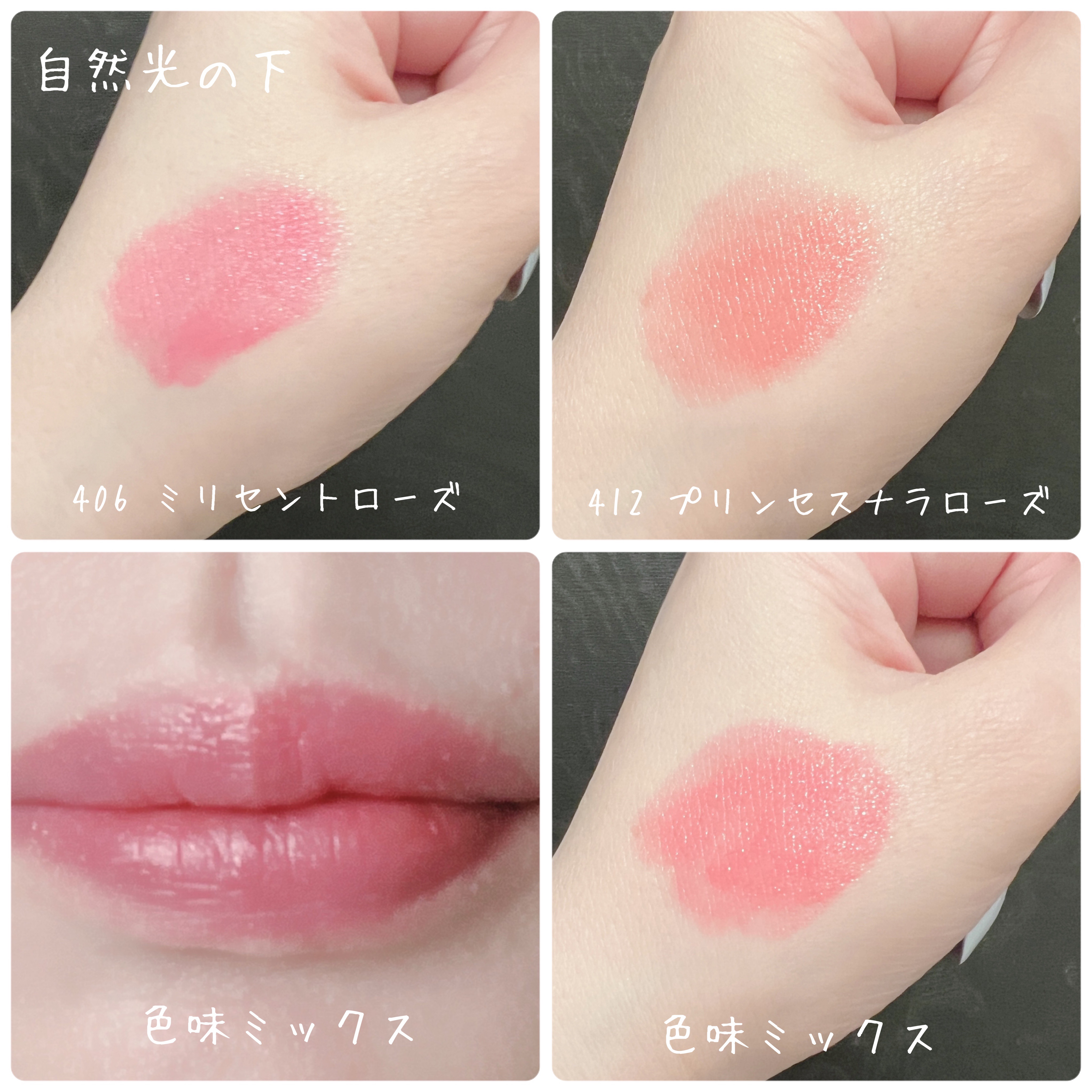 使用感・色味・カバー力、どれも好印象ですが、他のクッションファンデと比べて特段良い点や強みがあるかと言われると、あまり見当たりませんでした。 ジェルっぽい質感で、カバー力やトーンアップ効果はないものの、水光感のあるツヤ肌に仕上がります。 かなり高発色なティントで濃い目に仕上がります。お色味はローズ感が強く、エレガントな感じに仕上がります。 圧倒的なツヤ感を誇るチークです。Lakaやジルを超えるツヤ肌仕上がり!色味はどちらも淡めで、ツヤ感にほんのり色味が足された感じです。 淡いカラーなのでお肌馴染みが良くかわいい色味です。かなり淡めなのでツヤ感を足すのに重ねてもいける感じでした。 手持ちにないので個人的に新鮮な色味です。赤リップやブラウン系のアイメイクに合うお色味です。