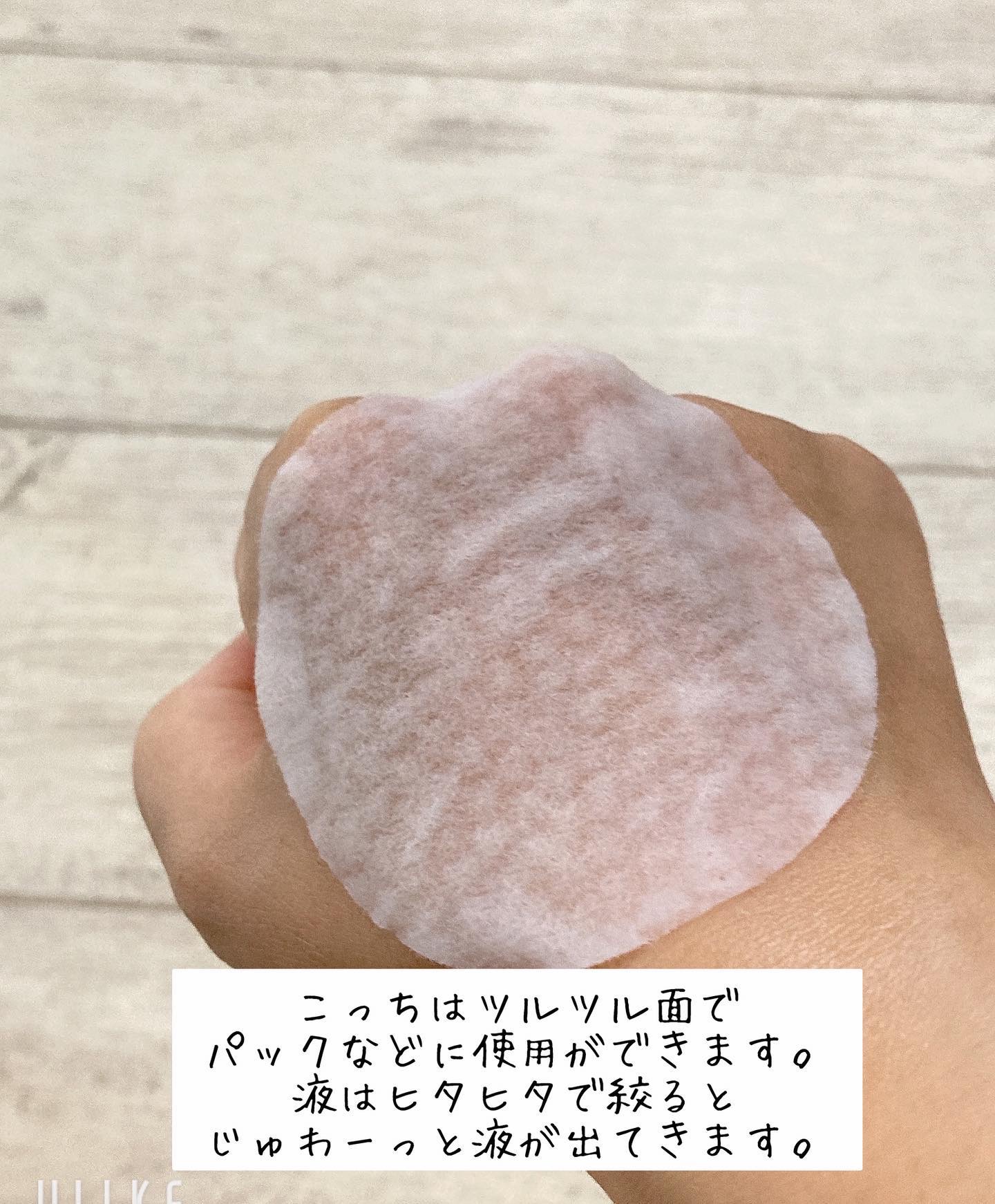 分厚めパッドで、エンボス生地がフワフワ✨角質を綺麗に取り除いてくれて、サッパリするんだけど、液がヒタヒタなもんだから、潤いをしっかり残してくれる❤ 拭き取り後はお肌が柔らかくなってる感じがして、次につける化粧水や美容液の浸透が(*´꒳`*)ヨキヨキ◎ 乾燥が気になる部分には部分パックにもオススメ✨ コンブの保湿成分が良い感じで、ヒタヒタだから、しっかり張り付いてくれる🎶