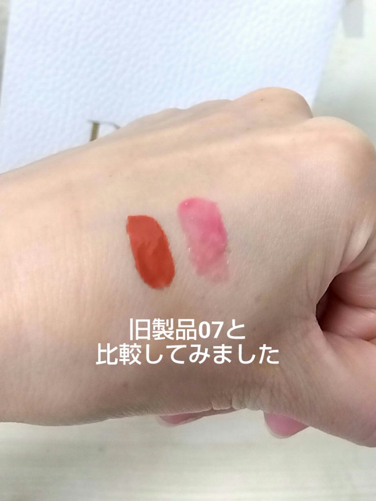 何色にしようか迷って039にしました!! 赤みのあるオレンジベージュ? 黄みも強めなのでイエベに合う色ですね✨ 派手過ぎず、好みの色です😍 飲食後にリップが全てとれちゃいますが… 使用感がいいのと、色が可愛いので全然オッケーです🙆♀ こまめに塗り直します👍 旧製品の07を持っていますがかなり透け感があるので全く別物ですね😊 07の青みピンクも可愛くてお気に入りです🎶 今回買った039はこの夏かなり使いそうです👍 他の色も欲しい〜!!