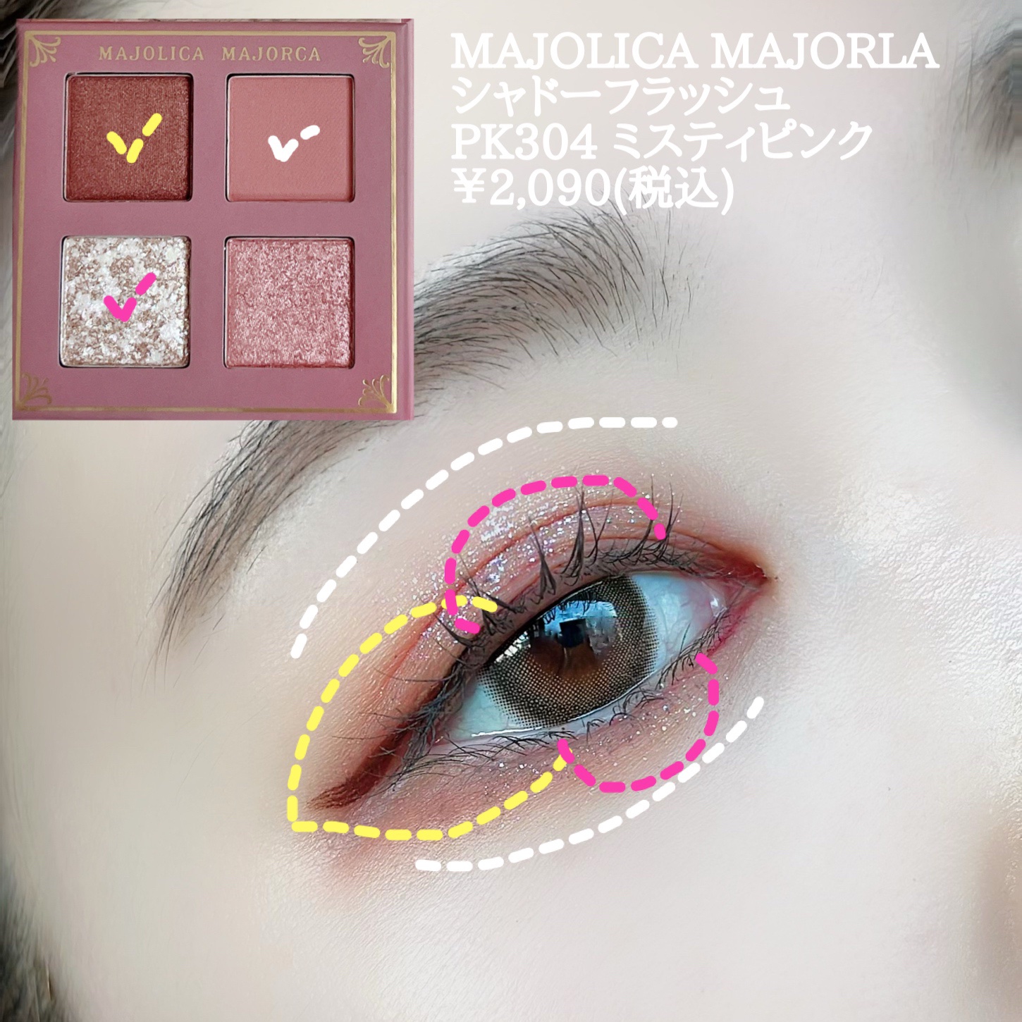 本日のアイシャドウ♡#MAJOLICAMAJORCA#シャドーフラッシュPK304ミスティピンク茜雲ワルツ春にピッタリ✨🩷✨可愛いピンク!!だけど、腫れぼったくなったりすることなくしっかり目力も出る使いやすいピンク!!グリッターがまためちゃく...