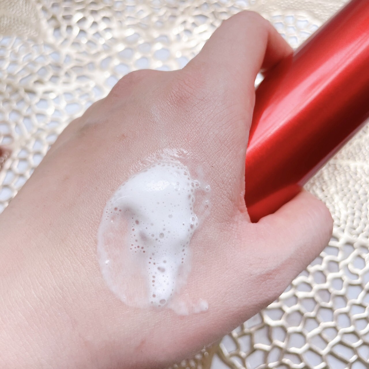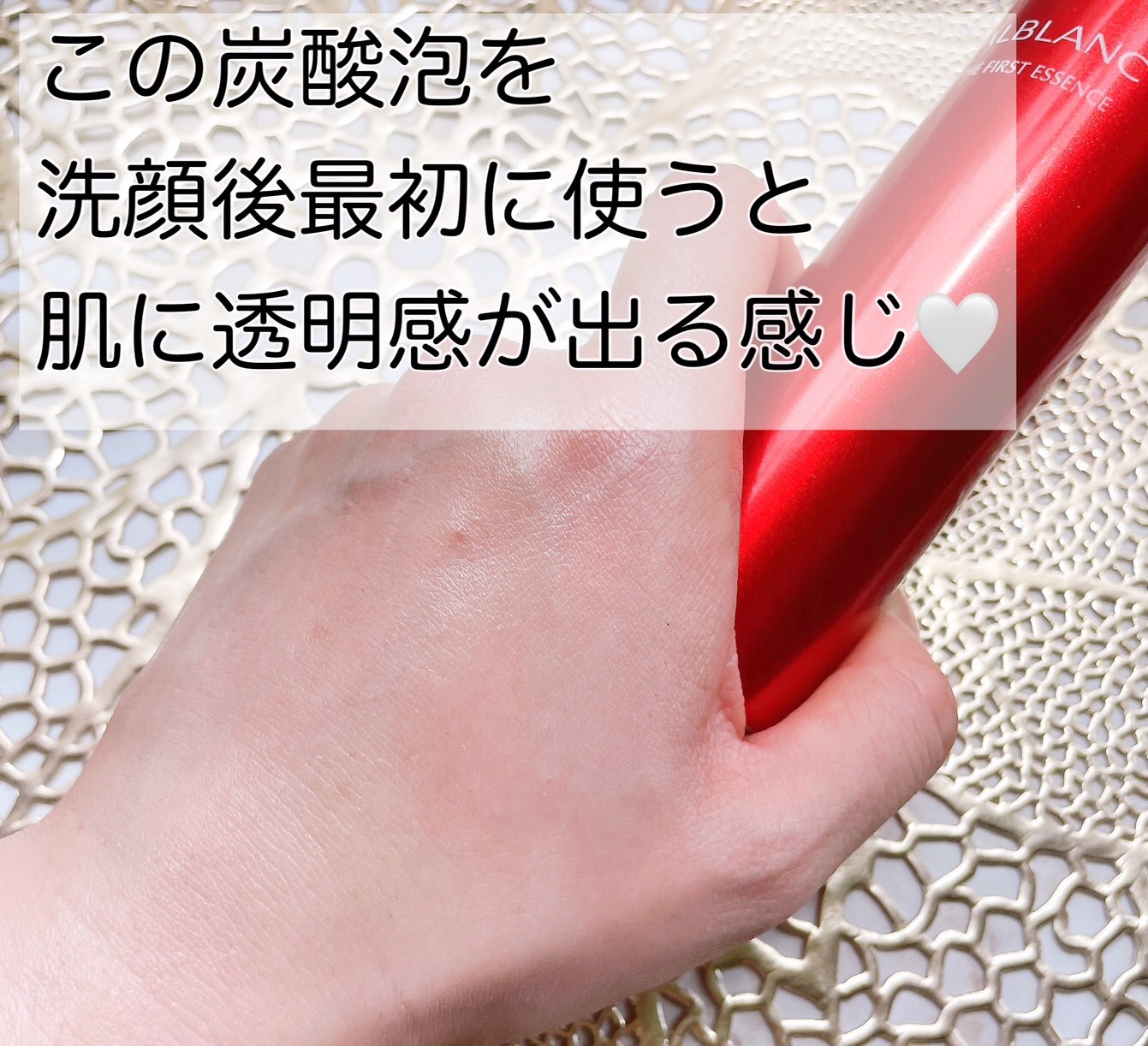 リピート率が高い人気のアルブラン ザ ファーストエッセンスです。赤い容器が印象的です。炭酸泡で出てくる美容液です。 化粧水や次に使うスキンケアをよくしてくれるので洗顔後1番に使います。花王の炭酸研究の英知が詰まっているんです! 保湿感も艶感もあるので手放せない人が多いのも納得です。レフィルもあるので使い続ける人のことも考えてくれているなと思いました。