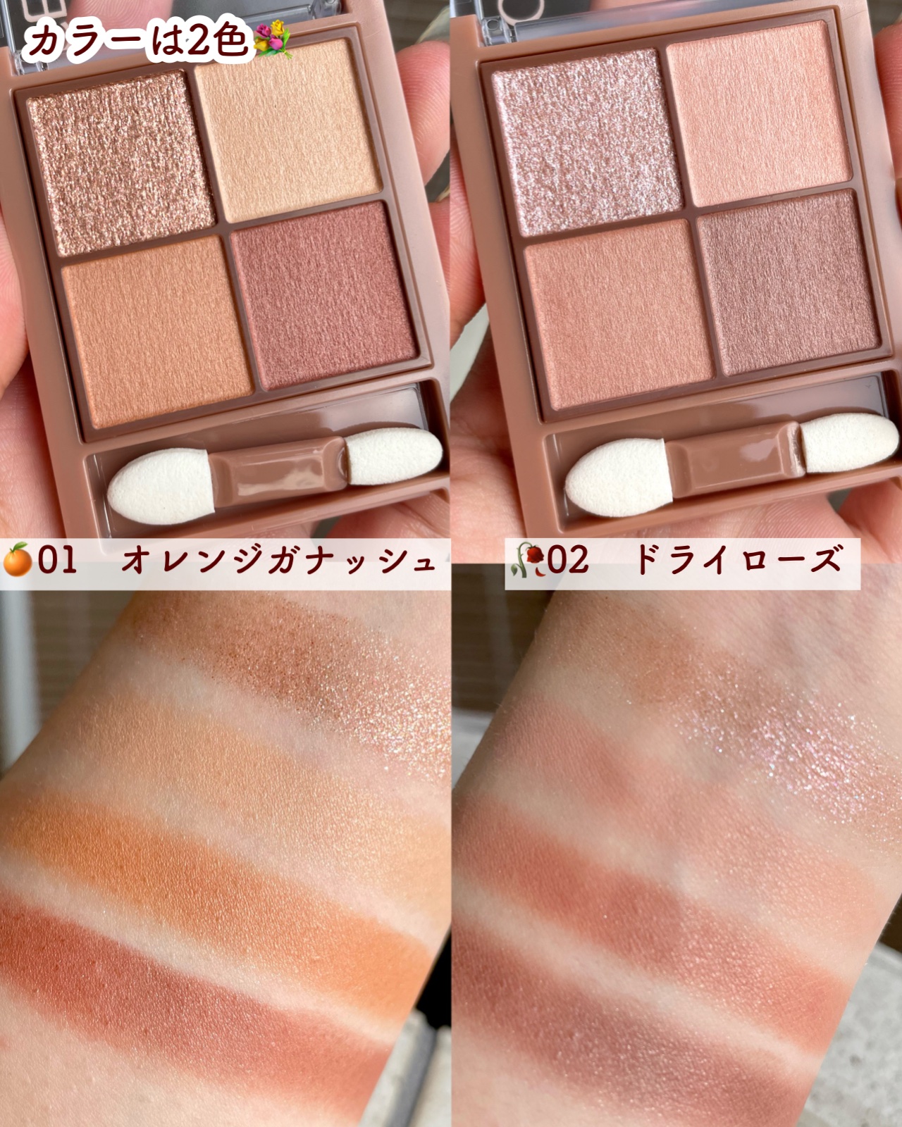 - 透け感マット×濃厚ブラウンの4色アイシャドウ。 しっかり目元を引き締めるビターなブラウンカラー。 透け感のあるブラウンを重ねて、自然な陰影のある目元へ。 ふんわり柔らかなパウダーなので、スルスル伸びてまぶたにピタッと密着。 保湿成分(スクワラン、ホホバ種子油)配合。