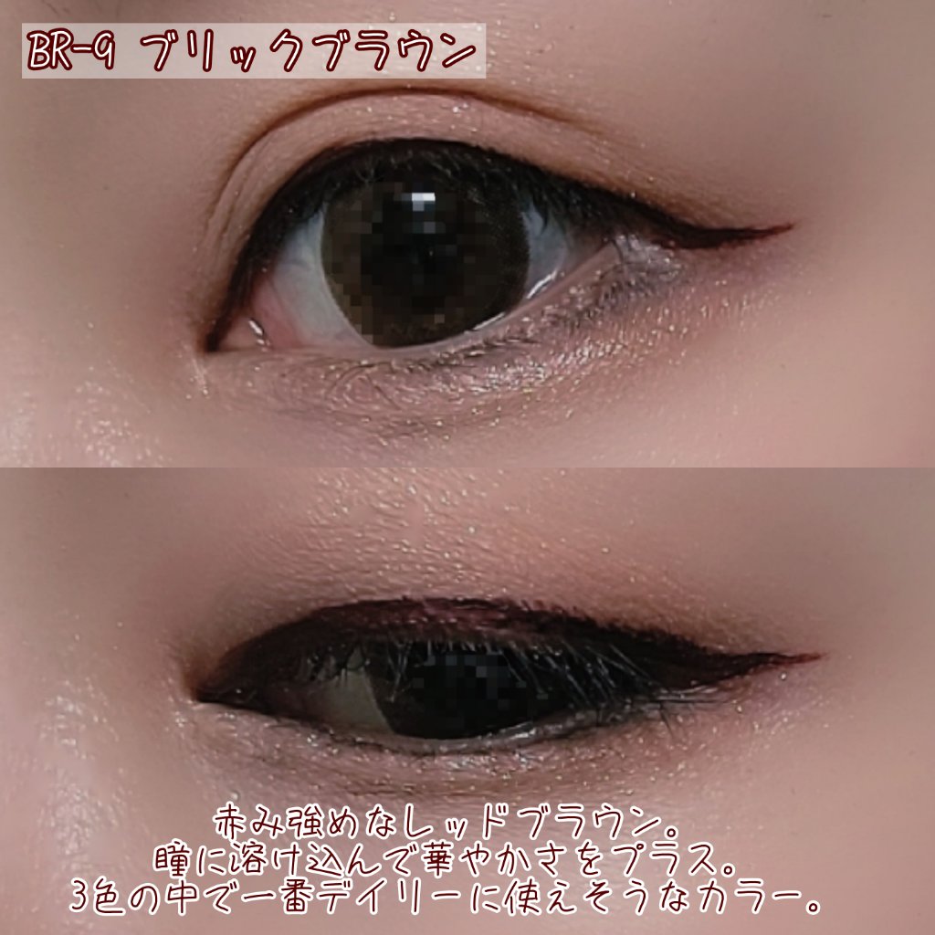 - <BR-1 やわらかな目元に ナチュラルブラウン> 水、アクリレーツコポリマーアンモニウム、BG、1,2-ヘキサンジオール、ベヘネス-30、フェノキシエタノール、ヒドロキシアセトフェノン、カプリリルグリコール、(チタン/酸化チタン)焼結物、AMP、ポリグリセリル-3ジシロキサンジメチコン、クエン酸、シメチコン、PG、ベントナイト、キサンタンガム、センチフォリアバラ花エキス、ラベンダー花エキス、ローヤルゼリーエキス、ラウリン酸ソルビタン、パルミチン酸ソルビタン、トリオレイン酸ソルビタン、ヒアルロン酸Na、カミツレ花エキス、トコフェロール、パルミチン酸スクロース、水添パーム油脂肪酸グリセリズ、アボカドエキス、[+/-]、酸化鉄、カーボンブラック <BR-2 絶妙な目ヂカラ ブラウンブラック> 水、アクリレーツコポリマーアンモニウム、BG、1,2-ヘキサンジオール、ベヘネス-30、フェノキシエタノール、ヒドロキシアセトフェノン、カプリリルグリコール、(チタン/酸化チタン)焼結物、AMP、ポリグリセリル-3ジシロキサンジメチコン、クエン酸、シメチコン、PG、ベントナイト、キサンタンガム、センチフォリアバラ花エキス、ラベンダー花エキス、ローヤルゼリーエキス、ラウリン酸ソルビタン、パルミチン酸ソルビタン、トリオレイン酸ソルビタン、ヒアルロン酸Na、カミツレ花エキス、トコフェロール、パルミチン酸スクロース、水添パーム油脂肪酸グリセリズ、アボカドエキス、酸化鉄、カーボンブラック <BR-3 ほんのり甘い ピーチブラウン> 水、アクリレーツコポリマーアンモニウム、BG、1,2-ヘキサンジオール、ベヘネス-30、フェノキシエタノール、ヒドロキシアセトフェノン、カプリリルグリコール、(チタン/酸化チタン)焼結物、AMP、ポリグリセリル-3ジシロキサンジメチコン、クエン酸、シメチコン、PG、ベントナイト、キサンタンガム、センチフォリアバラ花エキス、ラベンダー花エキス、ローヤルゼリーエキス、ラウリン酸ソルビタン、パルミチン酸ソルビタン、トリオレイン酸ソルビタン、ヒアルロン酸Na、カミツレ花エキス、トコフェロール、パルミチン酸スクロース、水添パーム油脂肪酸グリセリズ、アボカドエキス、酸化鉄、赤226、カーボンブラック <BR-4 明るくヘルシー オレンジブラウン> 水、アクリレーツコポリマーアンモニウム、BG、1,2-ヘキサンジオール、フェノキシエタノール、ベヘネス-30、ヒドロキシアセトフェノン、カプリリルグリコール、AMP、ポリグリセリル-3ジシロキサンジメチコン、クエン酸、シメチコン、PG、ベントナイト、キサンタンガム、センチフォリアバラ花エキス、ラベンダー花エキス、ローヤルゼリーエキス、ラウリン酸ソルビタン、パルミチン酸ソルビタン、トリオレイン酸ソルビタン、ヒアルロン酸Na、カミツレ花エキス、トコフェロール、パルミチン酸スクロース、水添パーム油脂肪酸グリセリズ、アボカドエキス、酸化鉄、赤226、カーボンブラック <BR-5 華やかな印象 レッドブラウン> 水、アクリレーツコポリマーアンモニウム、BG、1,2-ヘキサンジオール、ベヘネス-30、フェノキシエタノール、ヒドロキシアセトフェノン、カプリリルグリコール、AMP、ポリグリセリル-3ジシロキサンジメチコン、クエン酸、シメチコン、PG、ベントナイト、ラウリン酸ソルビタン、パルミチン酸ソルビタン、キサンタンガム、センチフォリアバラ花エキス、ラベンダー花エキス、ローヤルゼリーエキス、トリオレイン酸ソルビタン、ヒアルロン酸Na、カミツレ花エキス、トコフェロール、パルミチン酸スクロース、水添パーム油脂肪酸グリセリズ、アボカドエキス、赤226、コンジョウ、カーボンブラック <BU-1 目元に色っぽさ バーガンディー> 水、アクリレーツコポリマーアンモニウム、BG、1,2-ヘキサンジオール、ベヘネス-30、フェノキシエタノール、ヒドロキシアセトフェノン、カプリリルグリコール、AMP、ポリグリセリル-3ジシロキサンジメチコン、クエン酸、シメチコン、PG、ベントナイト、ラウリン酸ソルビタン、パルミチン酸ソルビタン、キサンタンガム、センチフォリアバラ花エキス、ラベンダー花エキス、ローヤルゼリーエキス、トリオレイン酸ソルビタン、ヒアルロン酸Na、カミツレ花エキス、トコフェロール、パルミチン酸スクロース、水添パーム油脂肪酸グリセリズ、アボカドエキス、赤226、コンジョウ、カーボンブラック <NV-2 ポップなスモーキーブルー> 水、アクリレーツコポリマーアンモニウム、BG、1,2-ヘキサンジオール、フェノキシエタノール、ベヘネス-30、ヒドロキシアセトフェノン、カプリリルグリコール、AMP、ポリグリセリル-3ジシロキサンジメチコン、クエン酸、シメチコン、PG、ベントナイト、ラウリン酸ソルビタン、パルミチン酸ソルビタン、キサンタンガム、センチフォリアバラ花エキス、ラベンダー花エキス、ローヤルゼリーエキス、トリオレイン酸ソルビタン、ヒアルロン酸Na、カミツレ花エキス、トコフェロール、パルミチン酸スクロース、