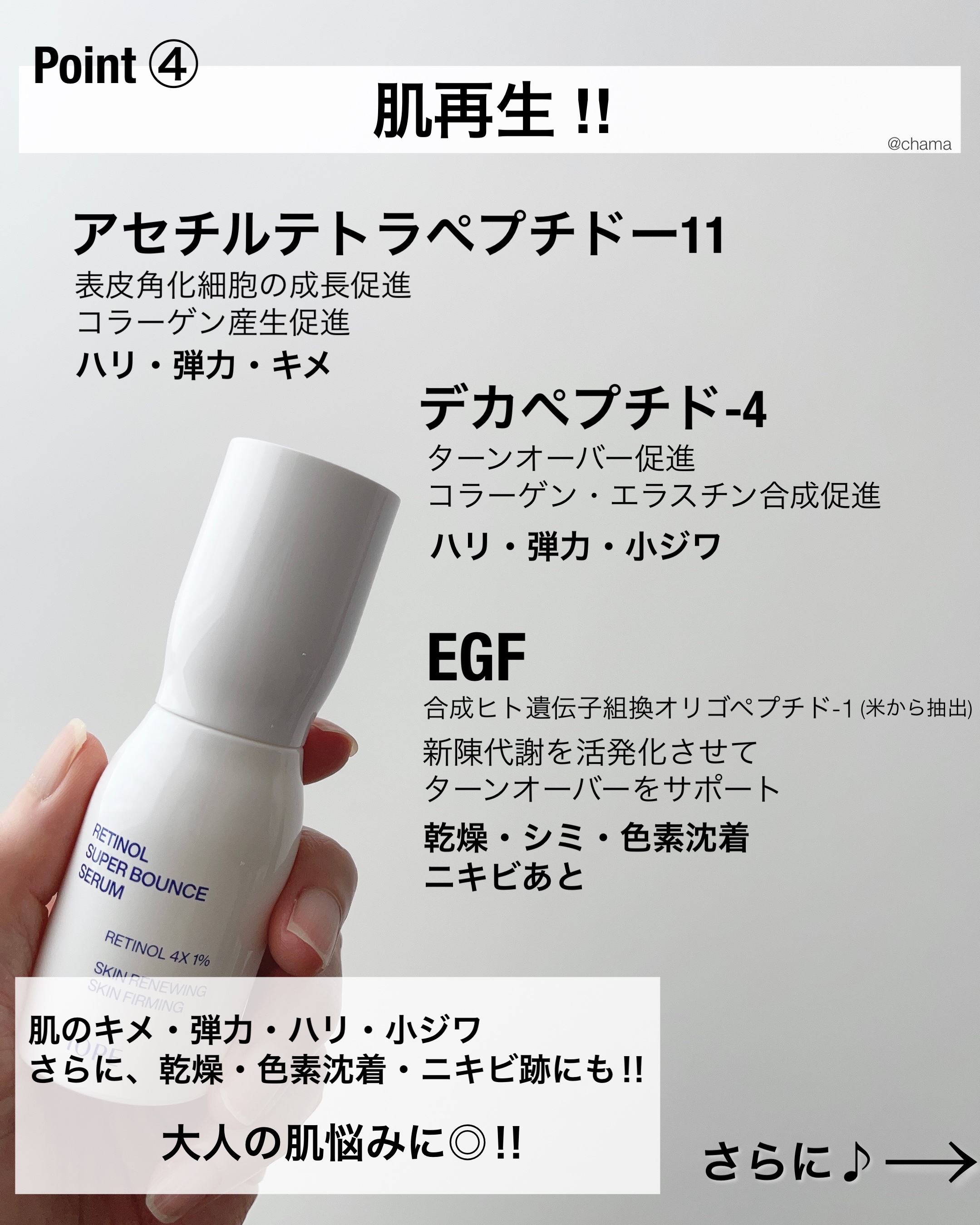 - ※2023/9/20 パッケージリニューアル。 レチノール4Xで満たされる密度の高いハリ、NEWレチノールスーパーバウンスセラム きめ細かい4重弾力レイヤリングで内側から満たされる密度ハリセラム