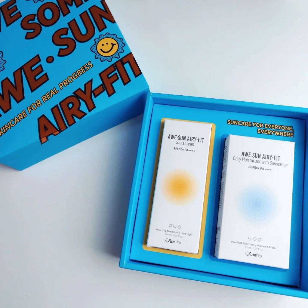 セラム3つはビタミンCアイテム! 少しとろみのあるテクスチャーでしっとり感のある使用感✨ 5.5以外も特に刺激は感じず、しっとり感のある美容液という印象でした。 5.5は冷蔵庫保管推奨! ブルーのパケのチューブは、しっとり感のある日焼け止めで、下地にも良さそうでした! オレンジのパケのチューブは、軽い使用感の日焼け止めでボディに良さそう! どちらもSPF50+ PA++++でしっかりUV対策できるアイテム👏✨ この2アイテムの入っていた水色のお箱がとても可愛くてテンションが上がる!😍🧡💙