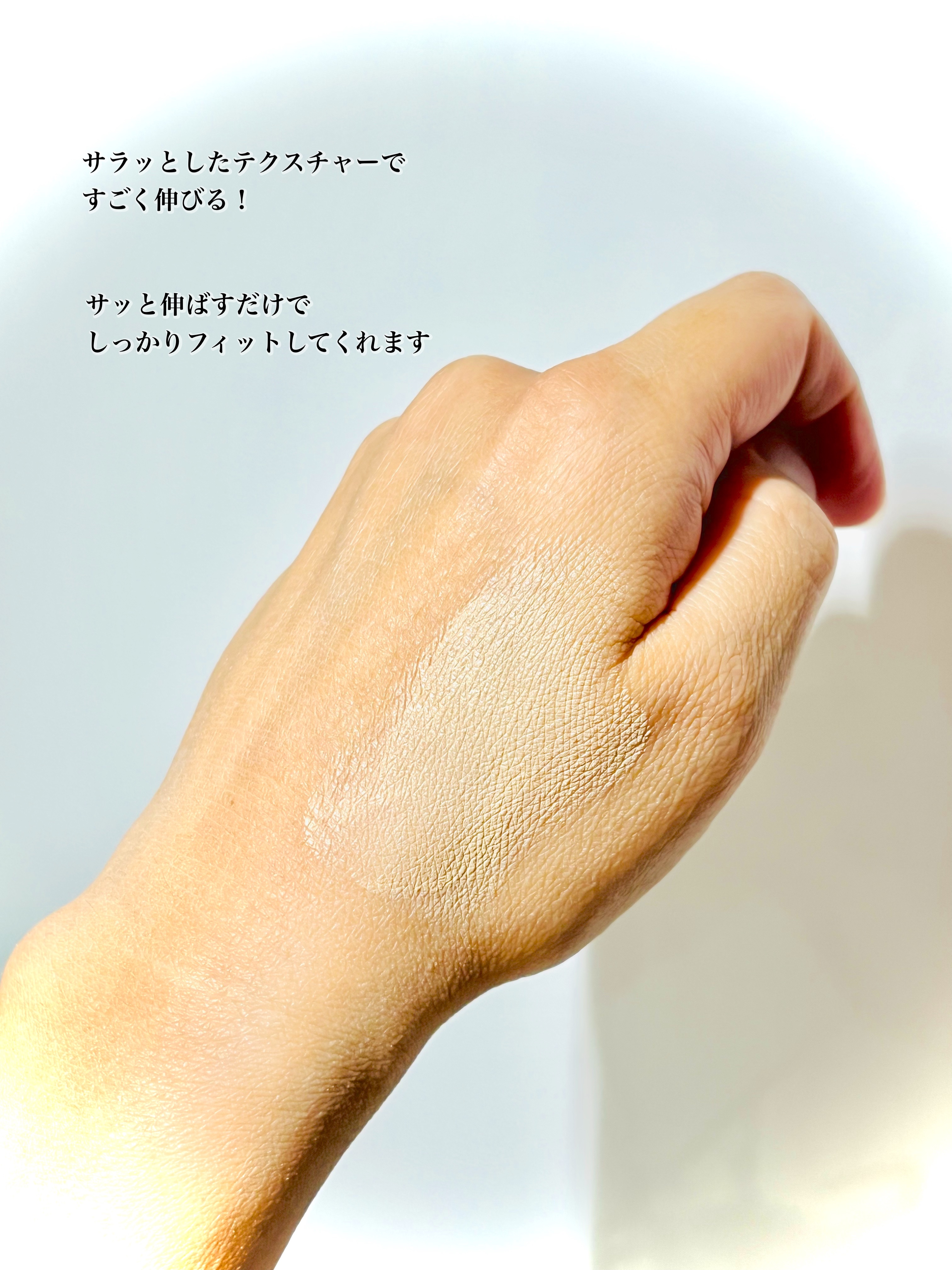 リニューアルバージョンは崩れにくさにケア成分が配合されて、更に進化しているということでとっても楽しみにしていました。 肌の上でとろけるように肌に馴染んでいって、薄膜な仕上がり。カバー力はどこまで高くないけれど、自分のもともとの肌をしっかり底上げしてくれている印象😌 真冬の暖房の効いた部屋でも乾燥を感じることなく、かといって、ベトベト、重い質感でもないので冬はパウダー少なめ、夏はパウダーをしっかり使えば年中使えるアイテム。🤭🙌