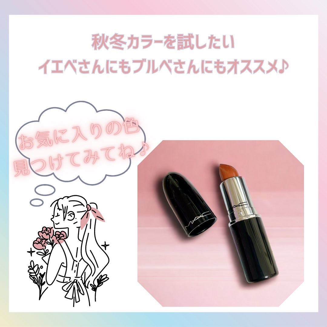 秋コスメ購入品◇M・A・C◇▶︎ラスターガラスリップスティック/549ピーディーエー 新色ではなく前からある定番色なのですが赤いリップがほしくて購入赤すぎず少しブラウンオレンジが入ったような使いやすい赤で秋に限定せず一年中使いたくなる素敵...
