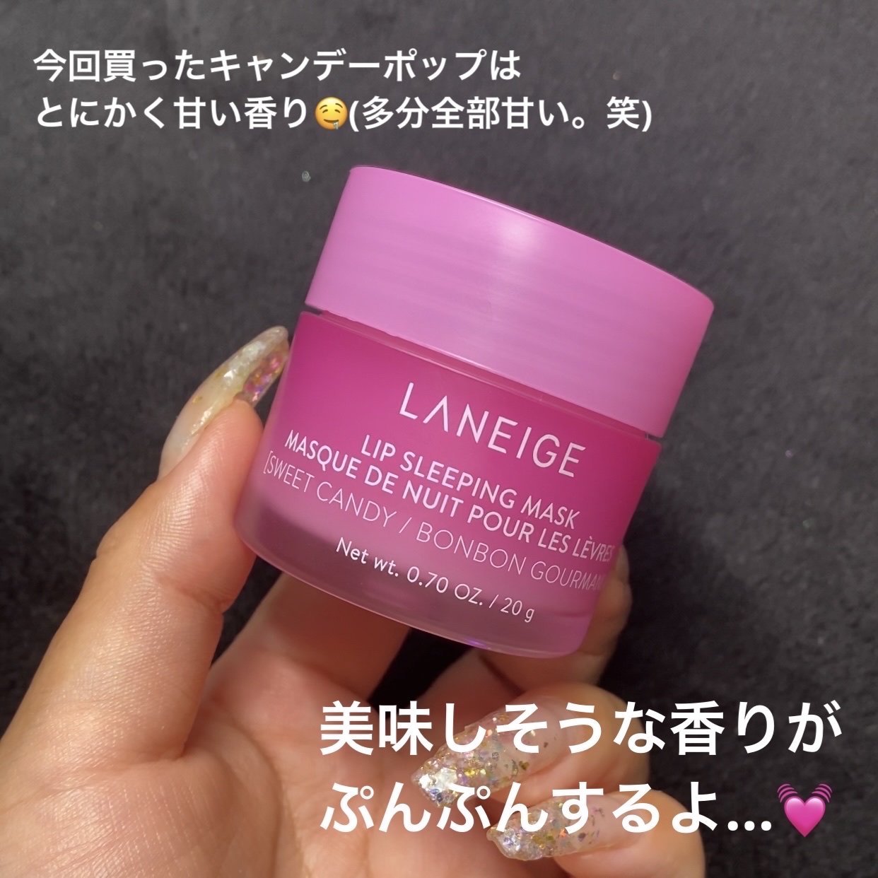 LANEIGE リップスリーピングマスク グレープフルーツは、寝ている間に角質にうるおいを与え、なめらかでふっくらとした唇へと導きます。 香りは全部で5種類。ベリー、グレープフルーツ、バニラ、スイートキャンディ、グミベアがあります。 唇にバームをのせると、じんわりとろけて密着! 翌日の朝までしっかりと保湿されていました🌟