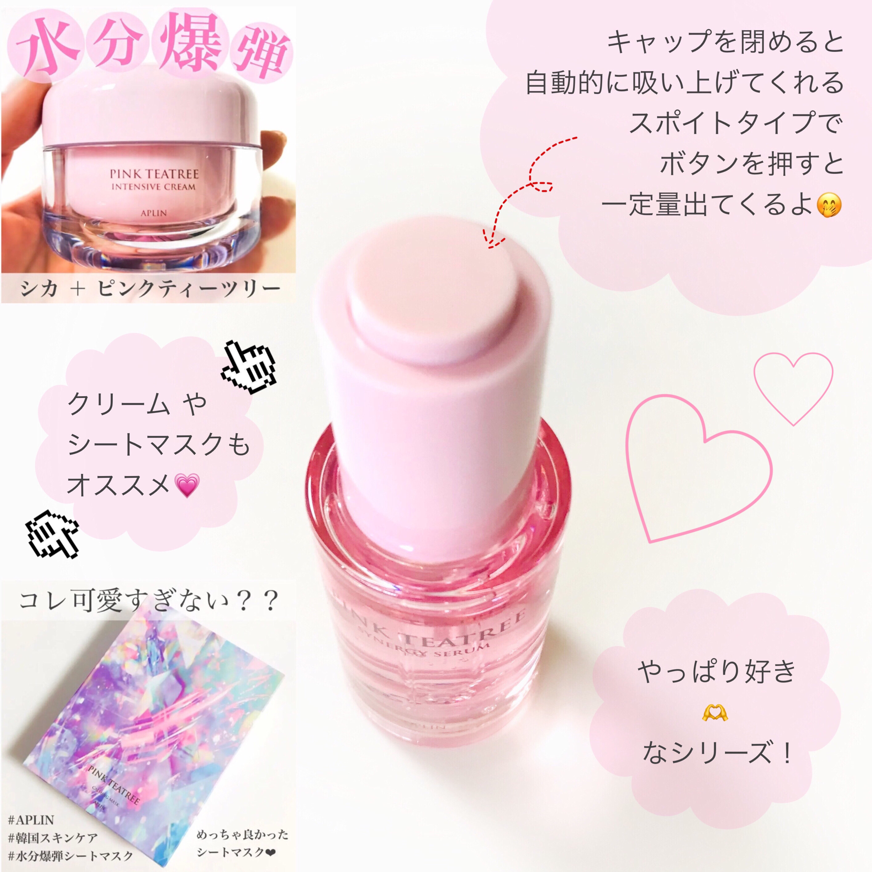 APLINの『ピンクティーツリーシナジーセラム』はティーツリーとシカエキス配合のニキビ・肌荒れ悩みをケアしてくれる美容液💗 このピンクカラーは人口色素を一切排除し原料本来のビタミンB12成分のカラーで、荒れた肌に水分と活力を与えお肌の調子を整えてくれます❣️ キャップを回すと自動的に一回分のセラムがスポイトに吸い上げてくれるので、量を調節したりせずとっても便利✨