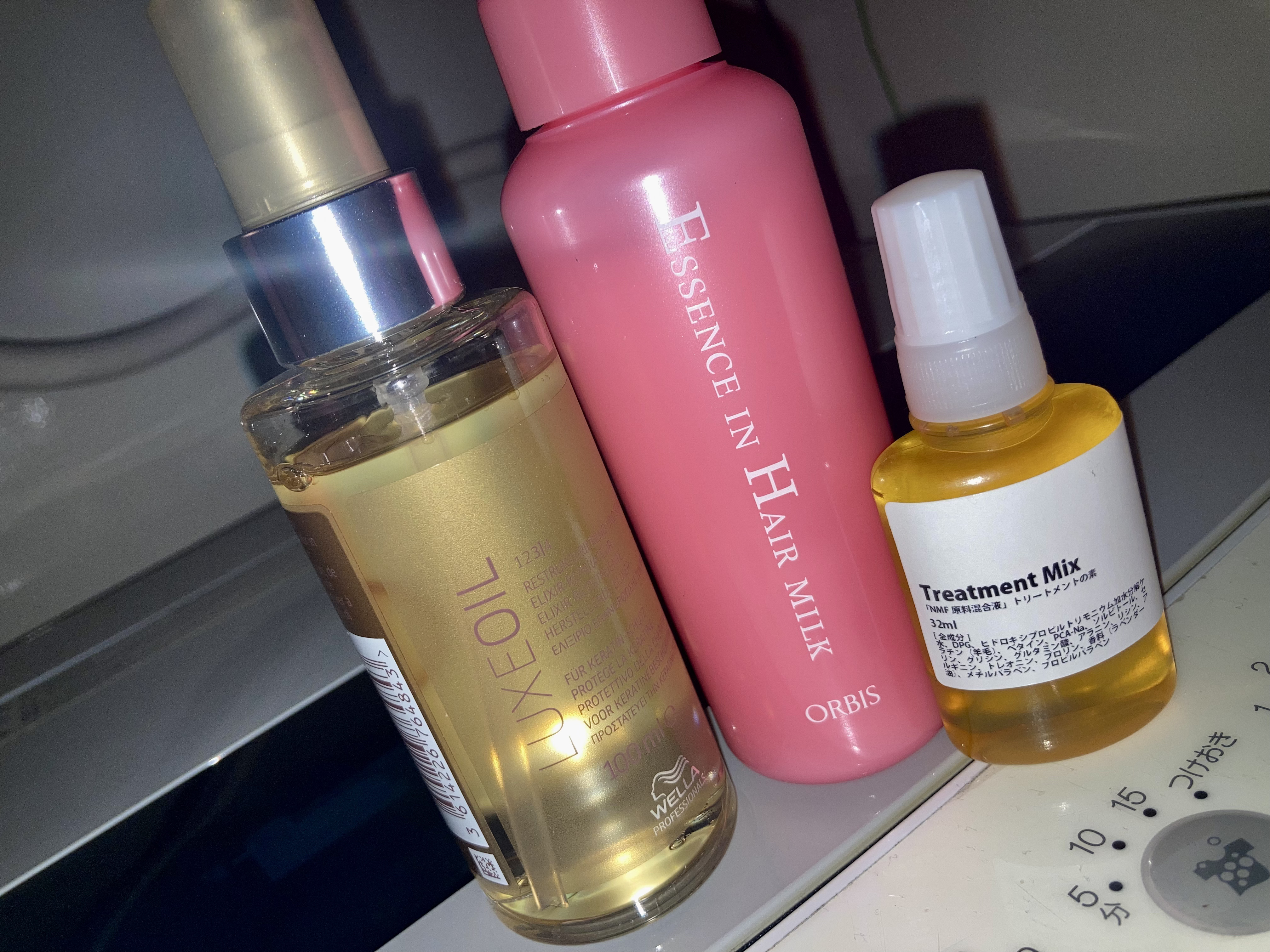 シャンプーが軋まない!トリートメントはノンシリコンなので使う順番適宜変えてます 髪内部の水分補給に。無香料圧倒的大感謝 こっちは栄養補給。強い髪になれ!!!! 7年使ってる圧倒的信用ヘアマスク。毛先7センチまでにしないと頭皮臭うから気をつけよう。ゴリゴリシリコンなのでキューティクルに蓋をする要員。