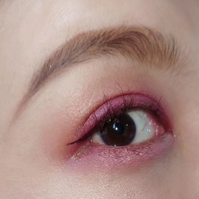 Kaleidosのラメ混じりの黒アイシャドウを使いました!めっちゃ濃いし良いこれ! 私的には深みが出るからafterの写真がお気に入り🖤 カラポのRipple、ベースがピンクなんだけどブルーラメが強めなの可愛かった🥺