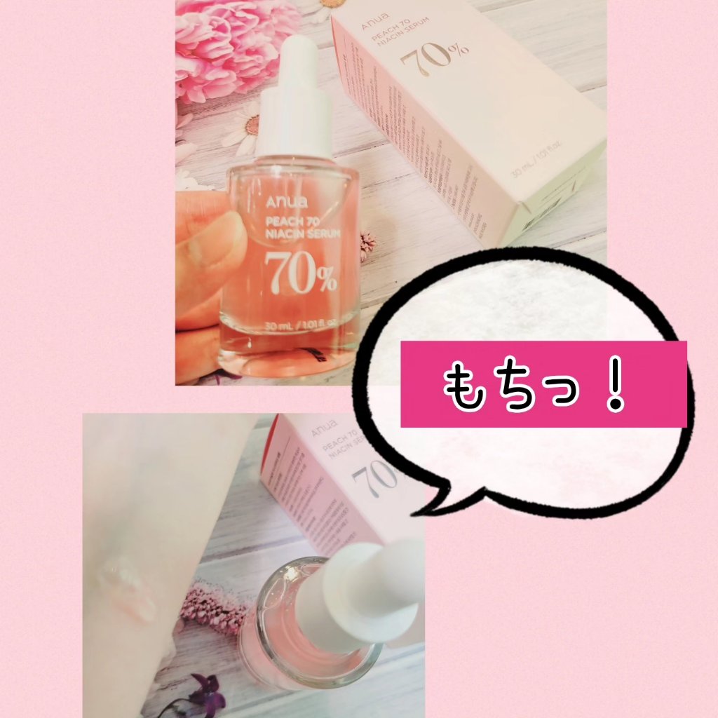 .Anua(アヌア)桃70%ナイアシンセラム30ml以前Anuaドクダミ80%水分沈静アンプルを試させていただいてリピートして愛用中なんですがなんと今回は2023年1月1日に新発売されているこちらを試させていただきました🍑「つるんと白桃肌を叶...