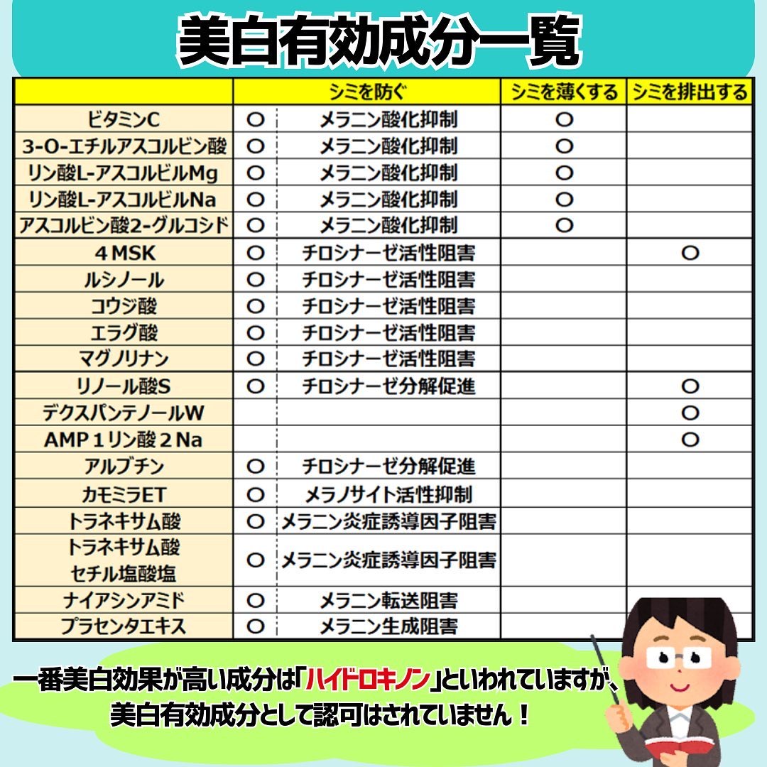 美白成分ってほんと 沢山あるので、組み合わせ✨ 参考になります😍