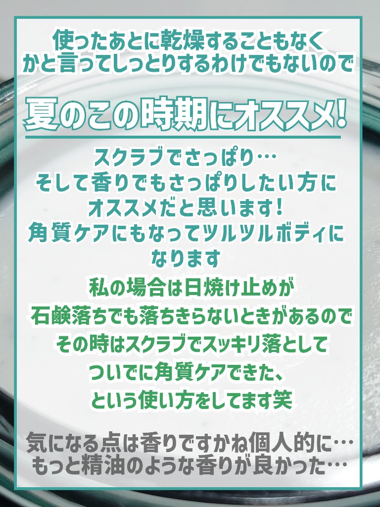 THEBODYSHOPボディスクラブアボカド🥑セルレで安くなっていたので購入🙌色、テクスチャ、香り……めっちゃアボカドです笑スクラブは粒が大きく溶けないタイプなので、タイルの間に挟まりがちです😂使用後は肌が滑らかになります✨️しっとり艶っとす...