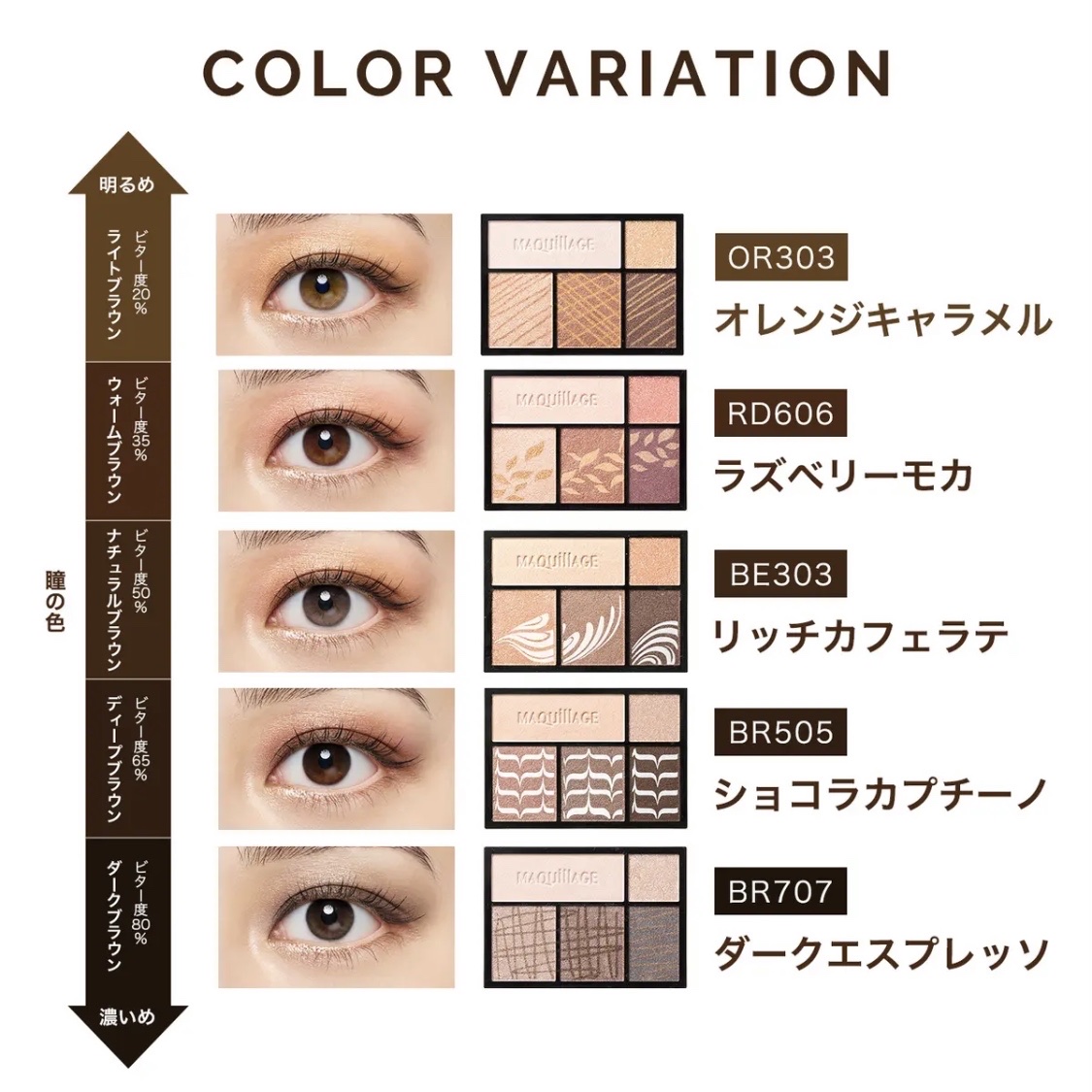 - 瞳色になじむことで、目を自然に大きく見せるアイシャドウ。 200人以上の瞳色研究から生まれた、瞳色に合わせて選べる5つのカラー。 パレット下段の3色のブラウンを左から順に重ねると陰影が際立つ仕上がりに、右から順に重ねると繊細な陰影で優しい印象に。 8時間化粧もち(色・つや・くすみのなさ)データ取得済み ※メーカー調べ。効果には個人差があります。 保湿成分「スーパーヒアルロン酸(アセチルヒアルロン酸Na)」配合。