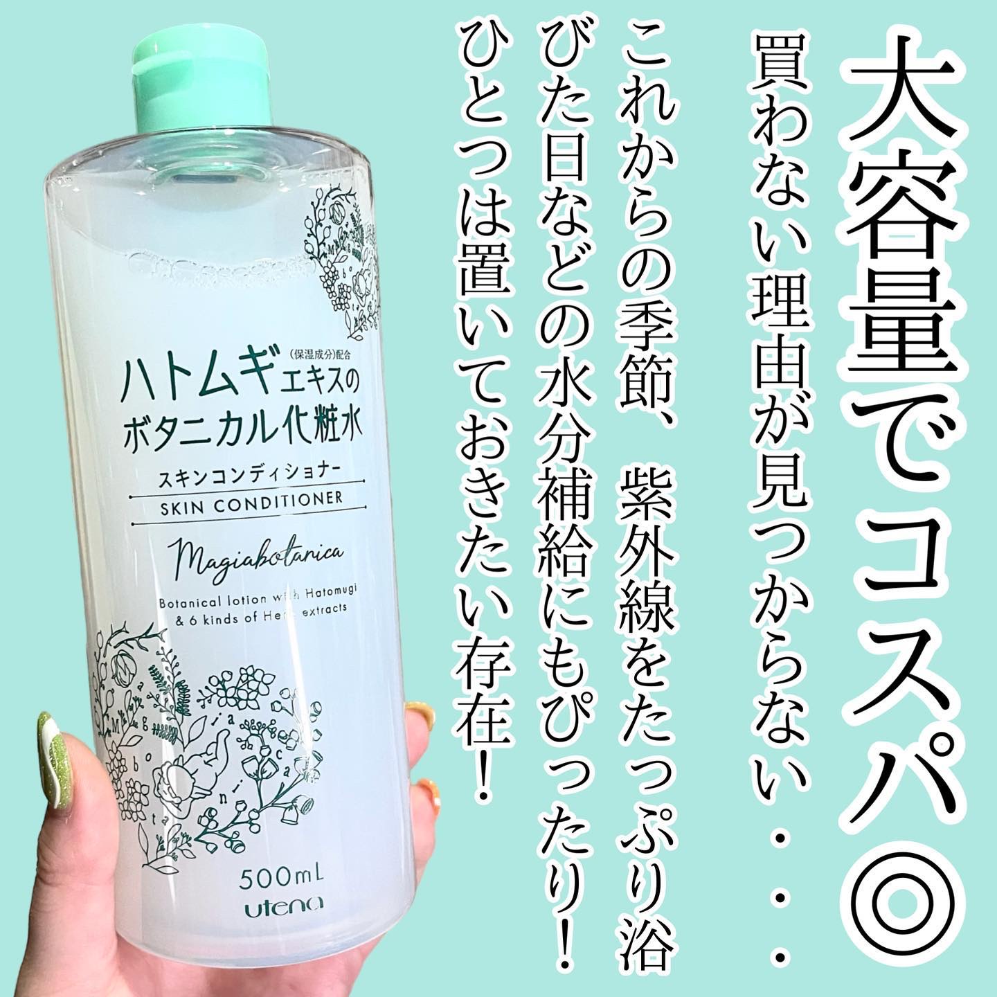 - 植物のちからで乾燥や肌あれ、ベタつきを防ぐ大容量の化粧水。 保湿成分のハトムギエキスと6種のハーブエキスのボタニカルエキスを配合しています。ベタつかず、みずみずしい感触でプレ化粧水としても。また、惜しみなく使えるので背中・首元・デコルテのケアにもおすすめです。たっぷりと水分を補給し、肌のコンディションをととのえてすこやかな素肌へ導きます。ニキビのもとになりにくい処方(ノンコメドジェニックテスト済み)。※すべての方のニキビのもと(コメド)ができないというわけではありません。