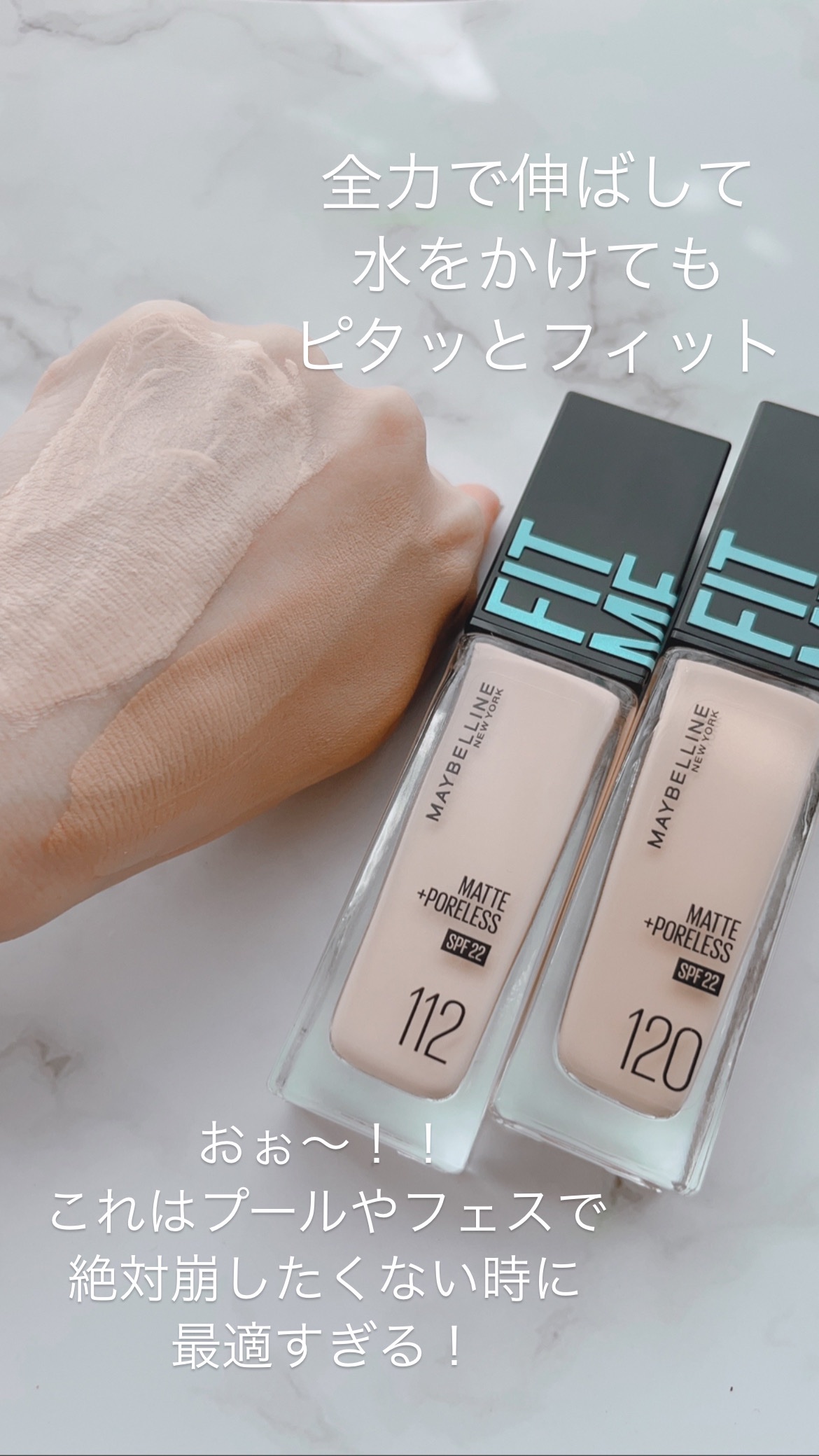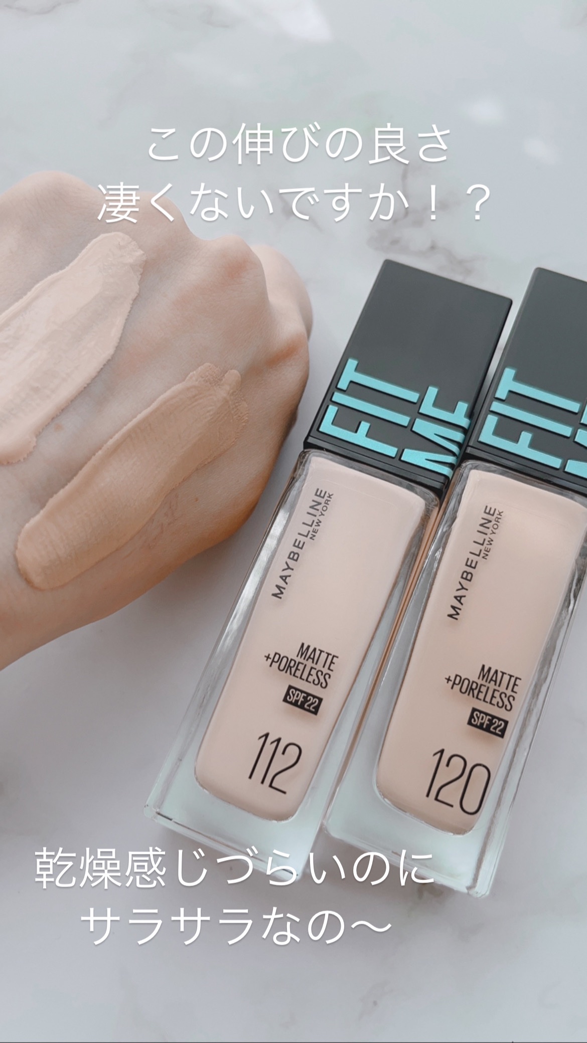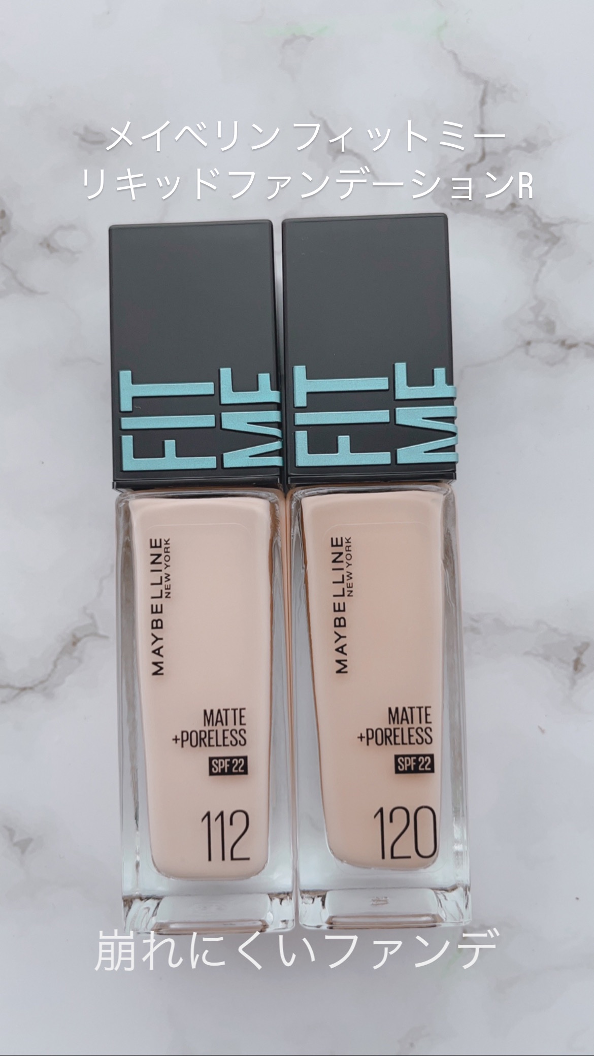 カラバリえぐ!!MAYBELLINENEWYORKフィットミーリキッドファンデーションR112、120ルミマットファンデ人気だけど、、、、フィットミーも負けてないのよ!!軽いつけ心地で肌にぴったり密着し、崩れにくいのがポイント!!毛穴やくすみ...