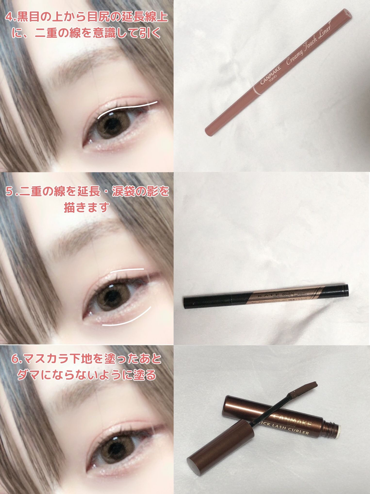 キャンメイクのクリーミータッチライナーが特に気に入っていて ピンクみのある色で濃すぎず影っぽくかけるので 暗め・濃いめの色が苦手なイエベ春さんにはとってもピッタリ😍