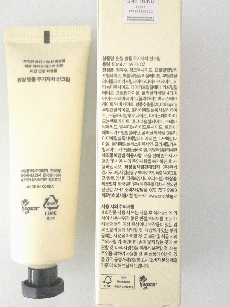 商品詳細情報ONE THING ツボクサ日焼け止め