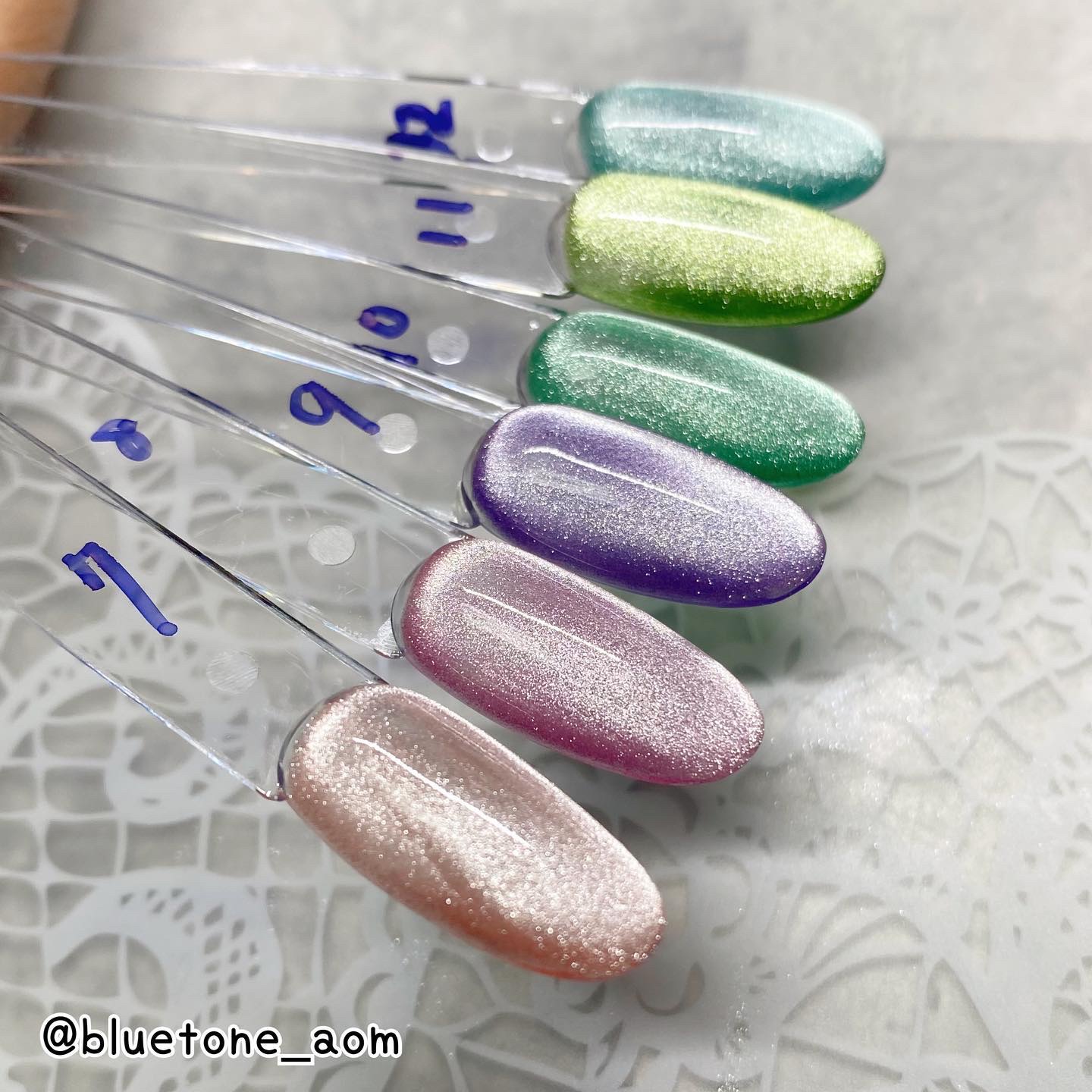 ラメがしっかりしてるし クリアカラーが入ってるから オーロラパウダー無しでも 充分キラキラしました! 反射強めのフィルムなので 実物はもっと うるうるとキラキラが強いです! ビー玉みたい🥺 ネイルシール長持ちさせたいけど ちょっと飽きてきたな〜って時とかに 全然違った印象になるのでオススメです! Seriaのベースジェル 本当にうるうるネイルしやすいので オススメしたい🙆♀️