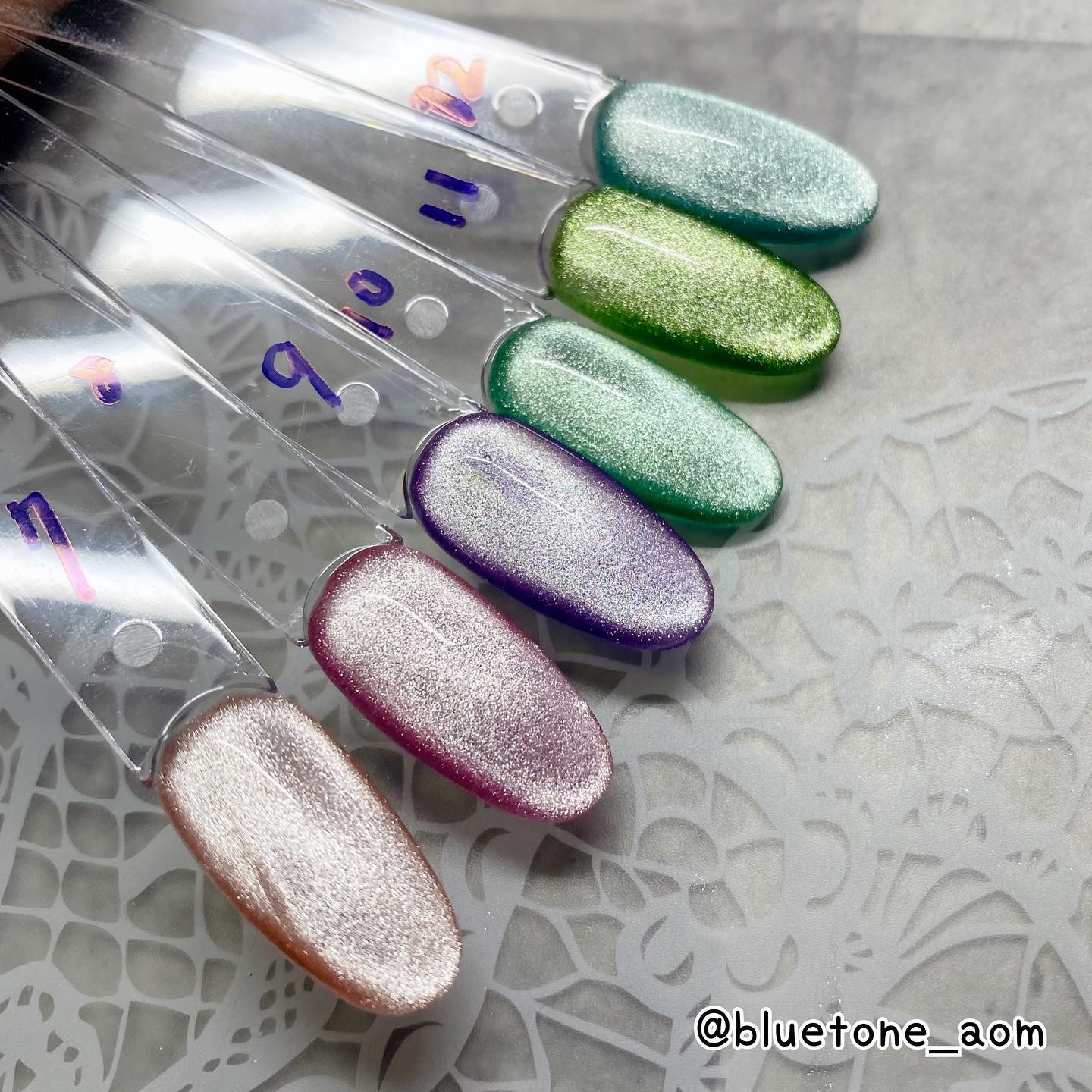 ベースカラーを塗ったらノンワイプトップを塗って硬化します。 クリア→ミラー感はあるけど、発色はそこまで濃くないのでガッツリシルバーを求めてる人は物足りないかも🤔 ホワイト→キレイにシルバーになりました! ミルキーホワイト→シャンパンゴールドみたいな落ち着いたゴールドっぽくなりました😳 ブラック→キレイにシルバーに!やっぱりブラックとシルバーは映えますね🤝ギラギラです! パウダーの粒子はちょっと大きめなのでちょっと不安でしたが擦ってみるとキレイにミラーになりました! ベースカラーで見え方も変わるので色々試しても面白いかもです🥰