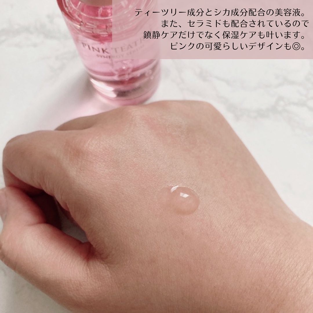 保湿成分のティーツリーやCICAが配合されている美容液です🎀 乾燥からの肌荒れに鎮静効果があり、ニキビに悩んでる方に特におすすめです🫶🏻 みずみずしくニキビ肌でも使いやすい使用感で、使ってるうちにニキビが鎮静されてきた感じがします🎶
