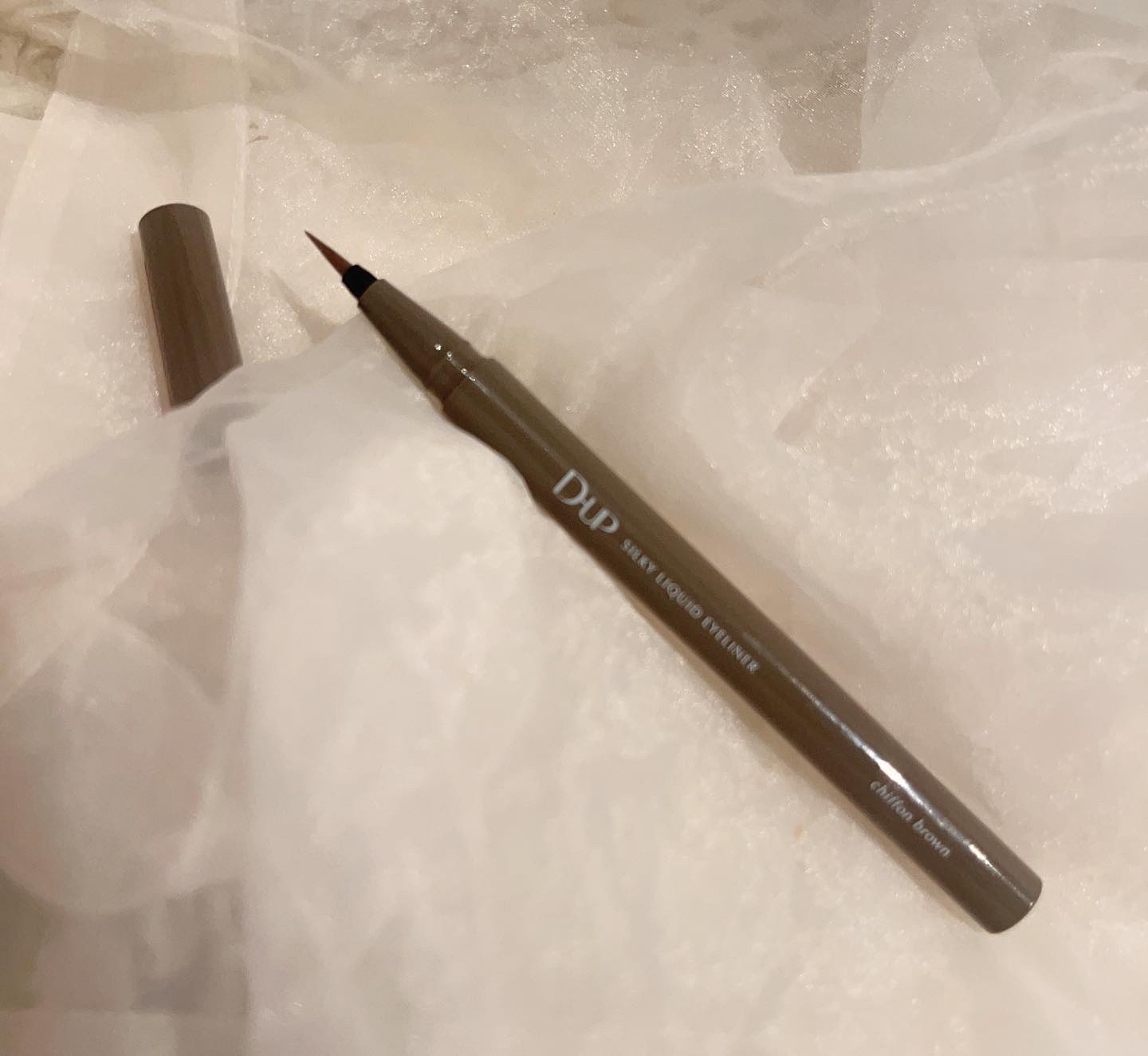 ♡D-UP  ・シルキーリキッドアイライナーWP ・シフォンブラウン 最近お気に入りのアイライナーの紹介です💕 濃すぎず薄すぎずの絶妙なカラーがアンニュイな目元にしてくれるます👀 筆先が0.1mmと細いので、極細の線から太い線、そして曲線まで自分の思い通りに引けます♡ そして、wpなので落ちにくい!汗かいてもこすっても落ちにくい所がお気に入り★ どんな色味のメイクにも自然に馴染む素敵な色味のアイライナーおすすめです✨ #ディーアップ #アイライナー #シフォンブラウン #アンニュイ #コスメ好きな人と繋がりたい