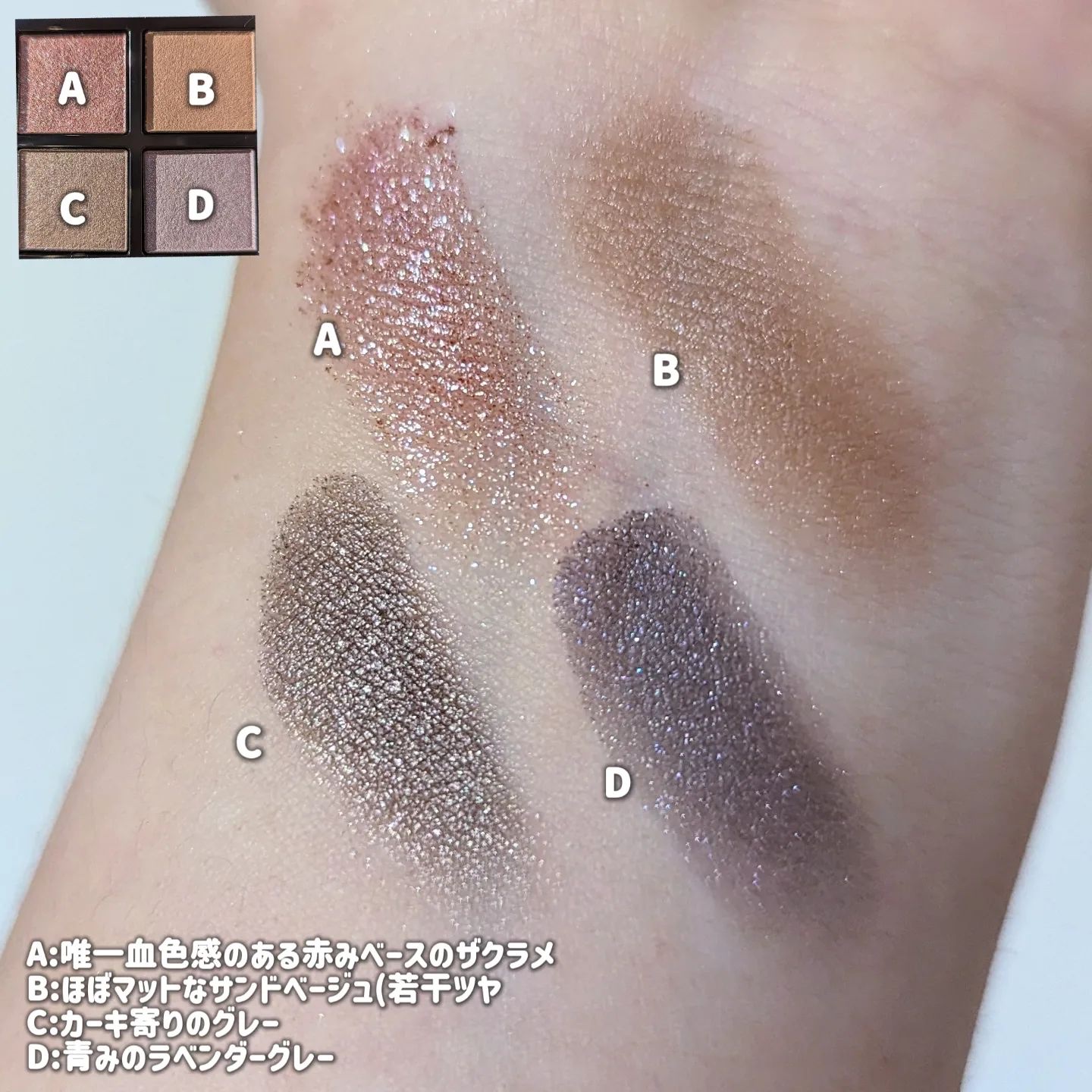 - LIPSベストコスメ2023 総合大賞5位LIPSベストコスメ2023 パウダーアイシャドウ部門1位LIPSベストコスメ2023 上半期こだわりアワード アイシャドウ部門発色賞2位LIPSベストコスメ2022 下半期新作大賞1位LIPSベストコスメ2022 下半期新作賞 アイシャドウ部門1位