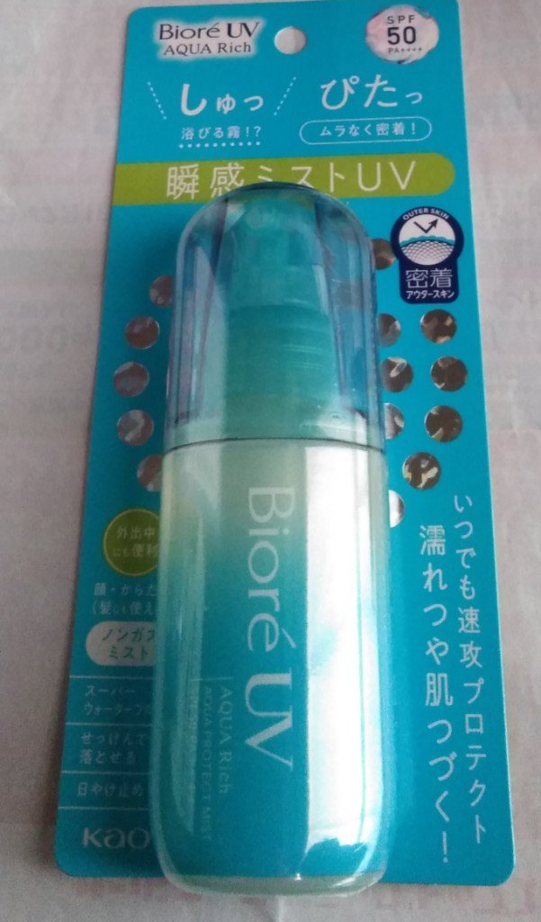 少し前にKaoさまの、Kaoコレモ!のキャンペーンでいただきました。ビオレビオレUVアクアリッチアクアプロテクトミスト顔、からだ、髪に使えます。霧のような細かいミストでした。体に使う場合は10~15cm離してまんべんなくかけます。顔に使う場合...