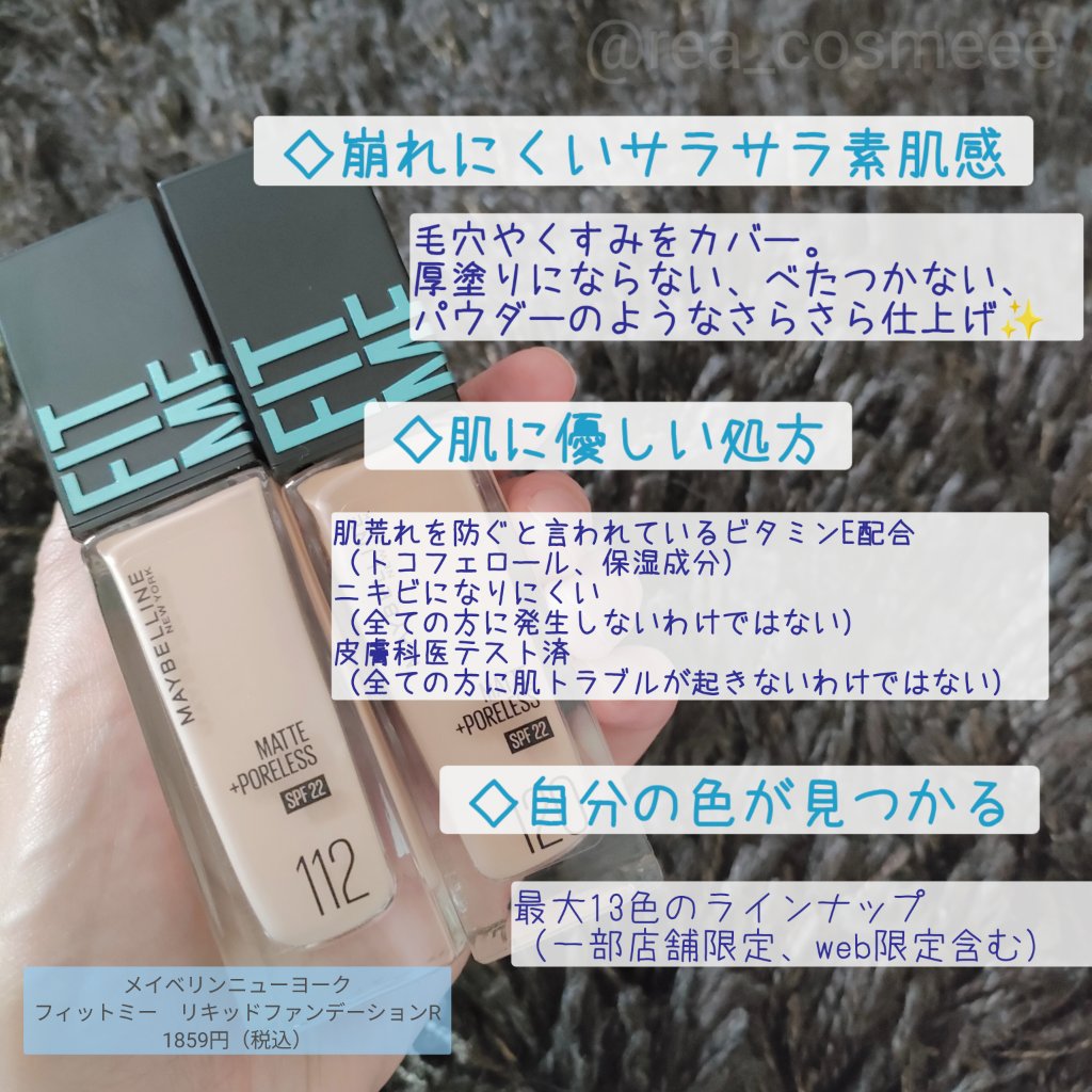 ピタッと密着!!崩れないファンデ✨MAYBELLINENEWYORKのフィットミーリキッドファンデーションR103をレビューしていきます📝マットのファンデーションが苦手で避けてきたのですが、これを使用して密着度が高くて全然崩れなくてびっくりし...