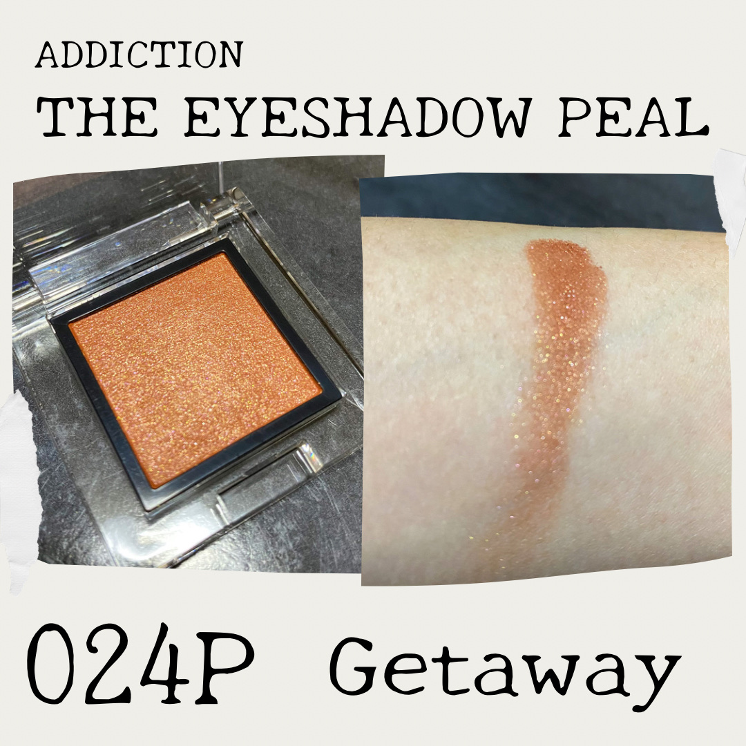▶ADDICTION□024P Getaway ¥2,200-赤みのあるオレンジテラコッタにパールがキラキラしていてとってもオシャレでトレンド感溢れるカラー✨️華やかだけど派手すぎないちょうど良さを感じるよ。日常のメイクからちょっとドレスアッ...