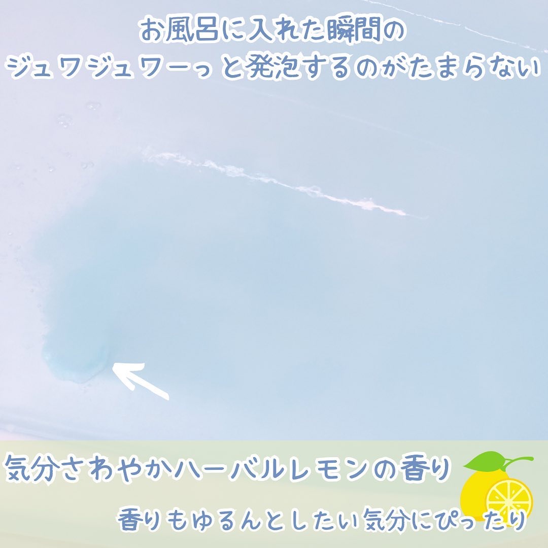 とにかくタブレットが大きくてびっくり! 湯船に入れるとすごい発泡力! さわやかなハーバルレモンの香りが夏の暑い時期にぴったり✨ 暑い時期でもお風呂時間を楽しめました♡