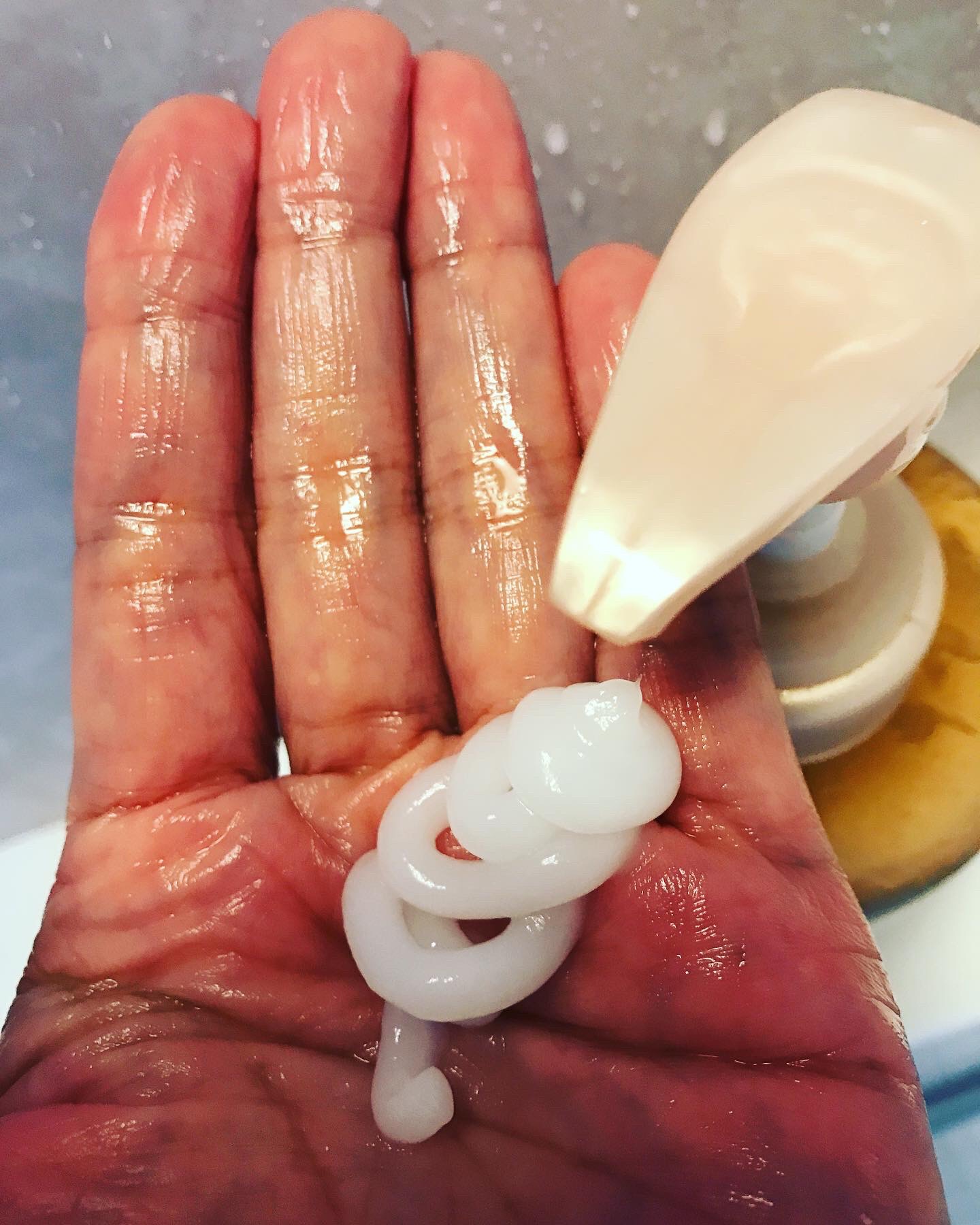| ジェルのようなみずみずしいテクスチャーのシャンプーで、髪に「塗り広げて」から泡立てて使います。 | 詳細を見る | ||
