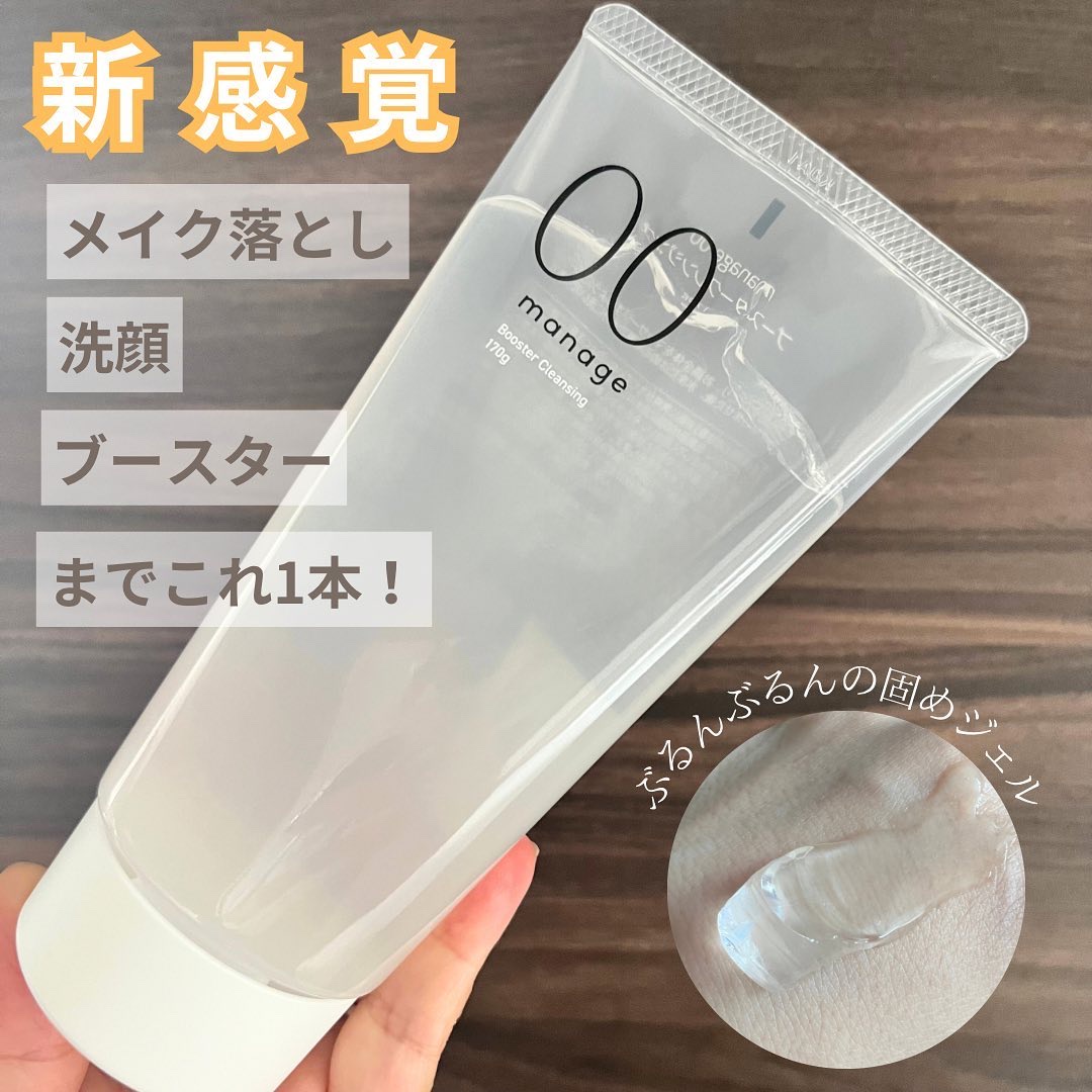 🌟manage00ブースタークレンジングぷるんとしたゼリーのような固めのジェル。食べたくなるような!?不思議な質感。クレンジング用に開発された成分「ナノキューブ※」を99.8%使用しているんだそう。なじませるとメイクや汚れが吸い付いてくる感じ...
