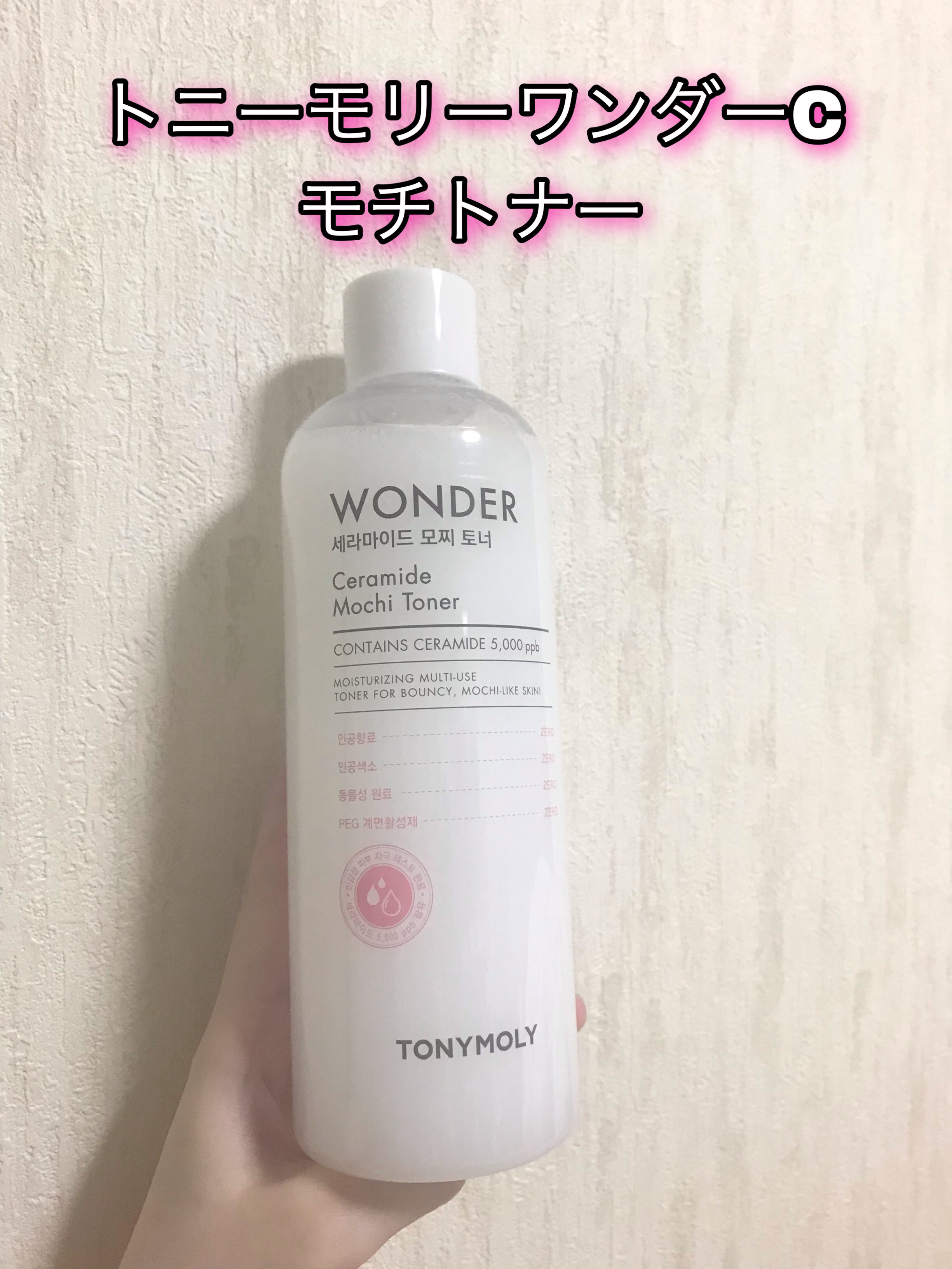 トニーモリーワンダーCモチトナー。元祖国民トナー。セラミド、ヒアルロン酸、パンテノール、ツボクサエキス配合。500mlの大容量。私はお風呂の後にボディに使っています。身体を拭いたらバスルームに戻ってトナーを身体にかけて、なじませます。後でバス...