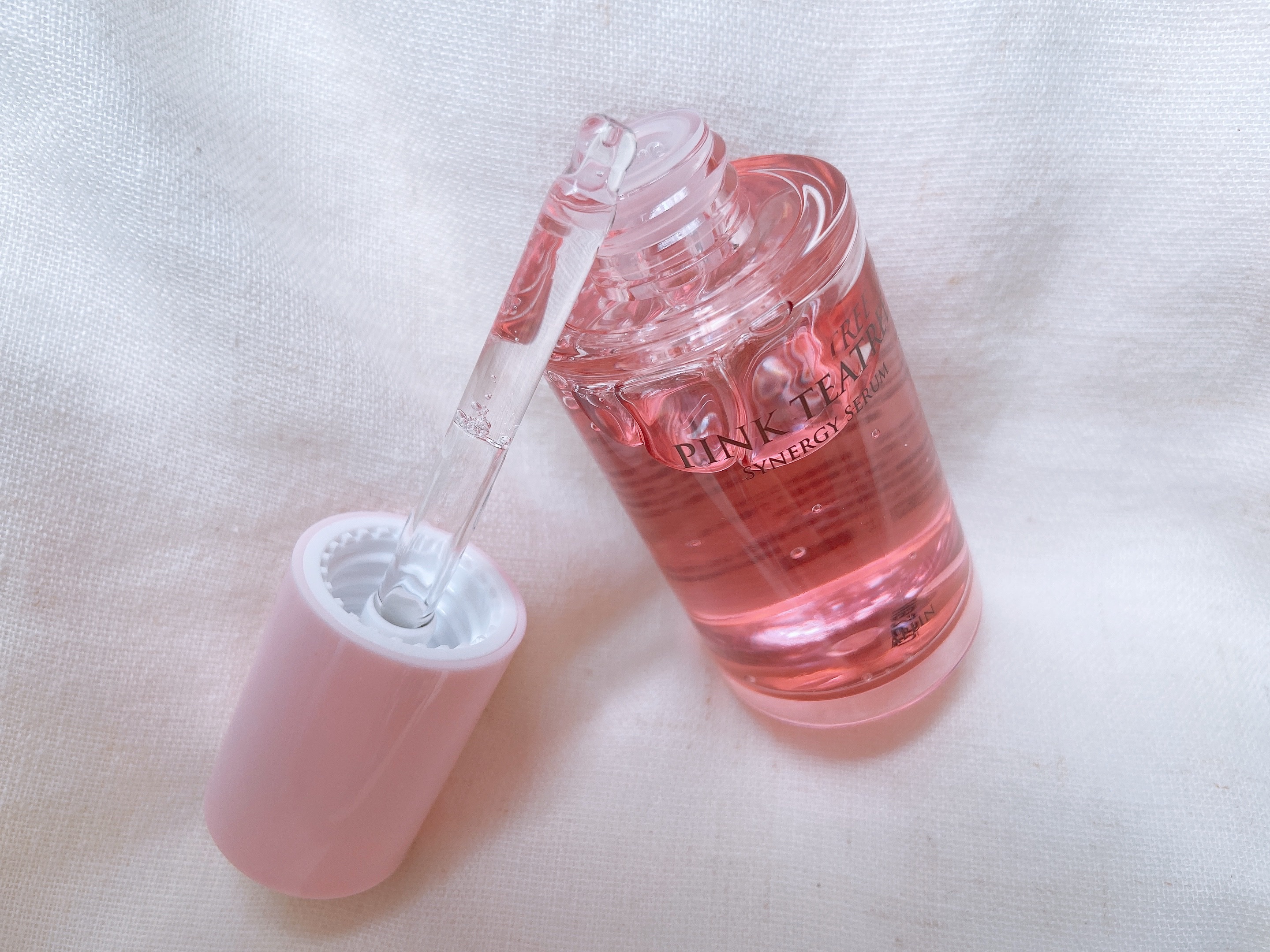 ピンクかわいいーーー! ってなるこのセラム🫶🏻 かわいいだけじゃ無いんです! 保湿成分のティーツリーやツボクサエキスなどのCICA成分や他にも優しいGREEN成分がたくさん! ほどよくとろみがあって、保湿感もあるんだけど重くない。